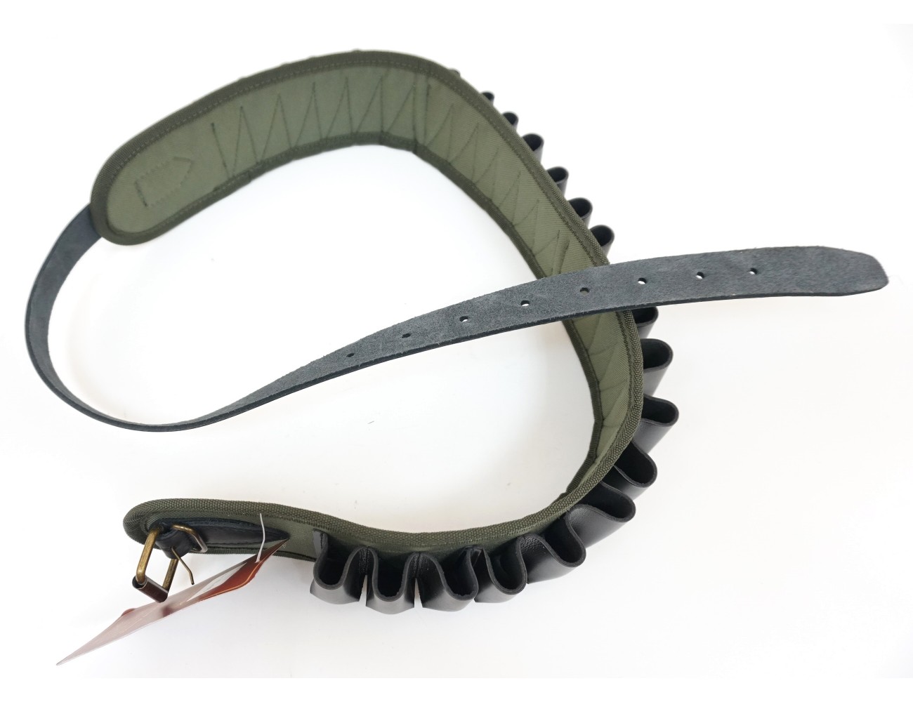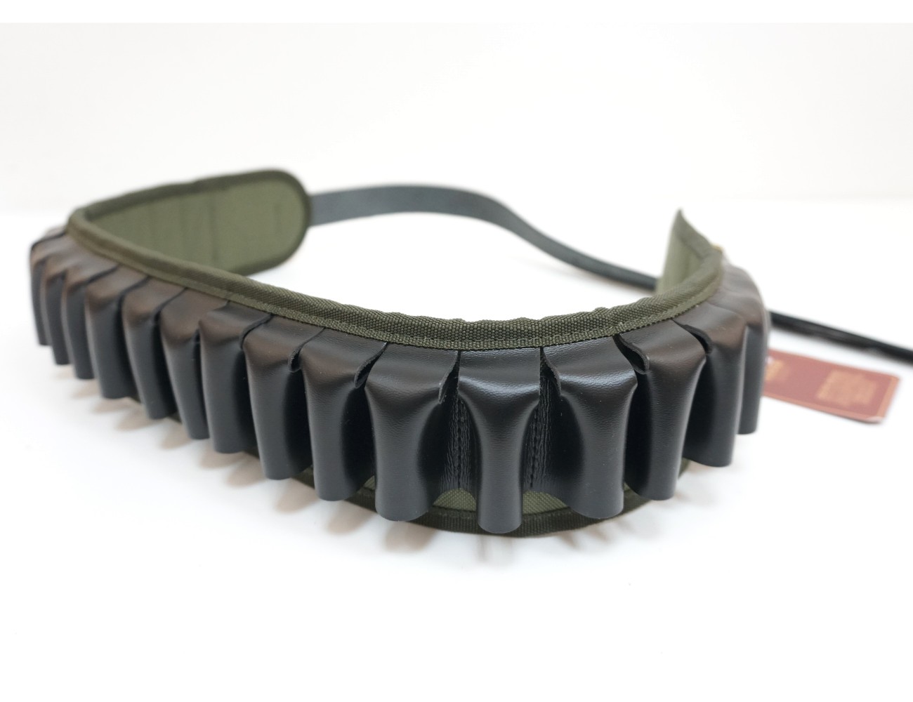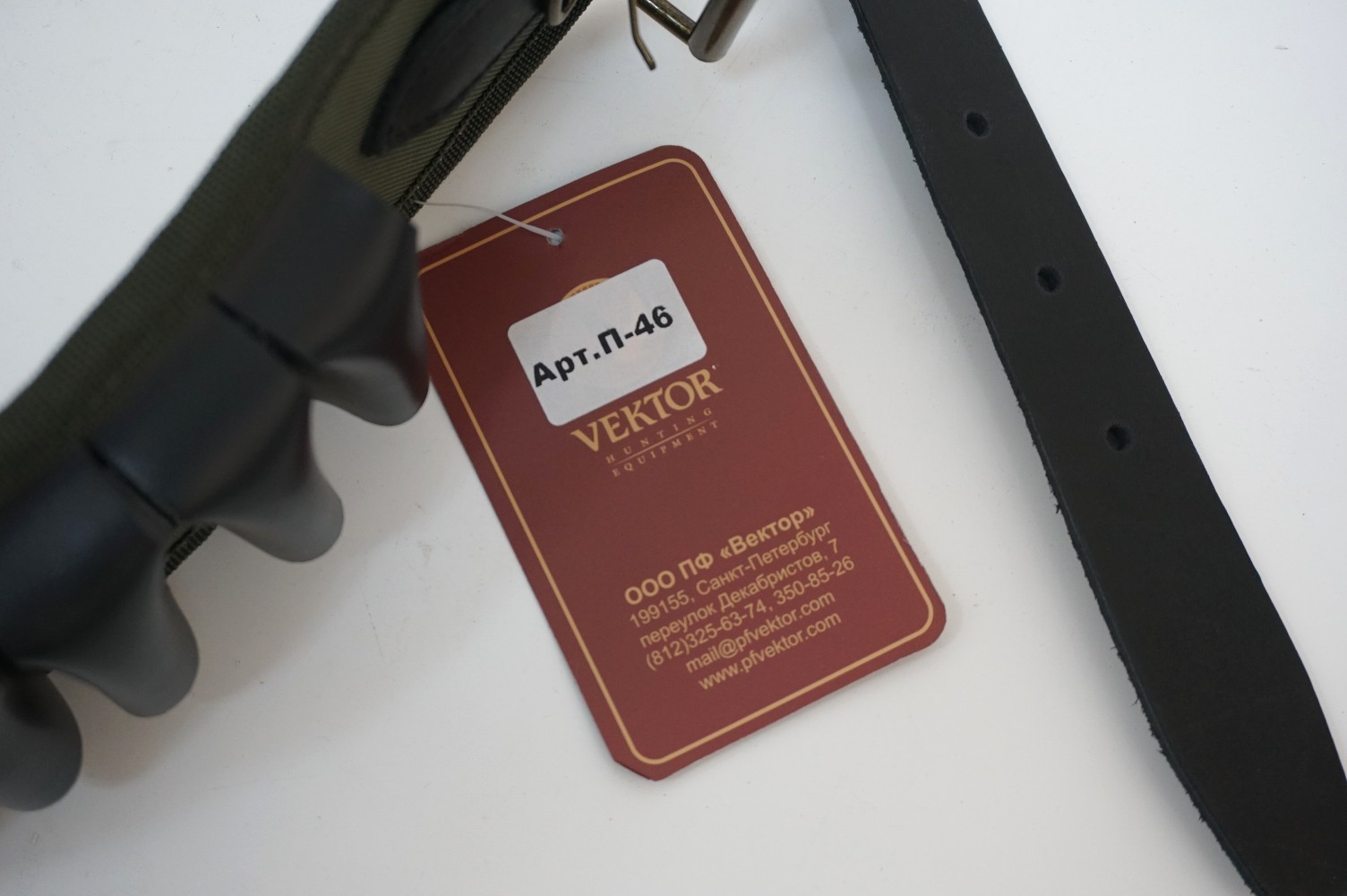 Патронташ из синтетической ткани, открытый, с газырями и ремнем из натуральной кожи.Открытый патронташ для ношения на поясе на 24 патрона к гладкоствольному оружию 12, 16 или 20 калибра. Основание патронташа Вектор П-46 изготовлено из прочной синтетической ткани зелёного цвета шириной 78 мм. Газыри и ремешки выполнены из натуральной кожи черного цвета. Ширина ремешков — 30 мм.