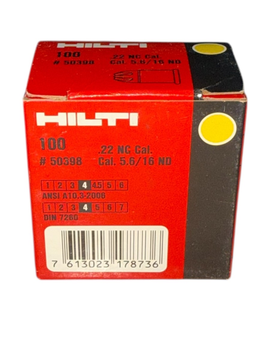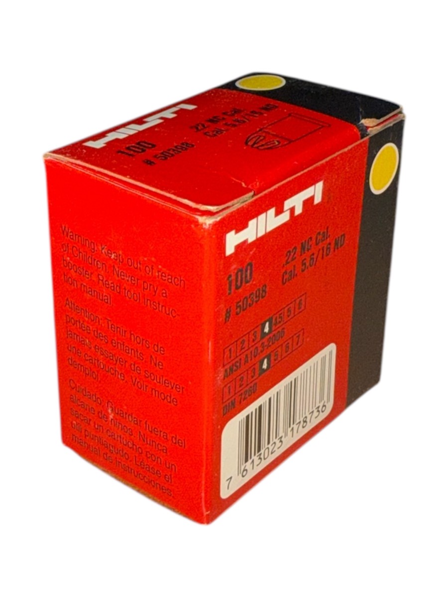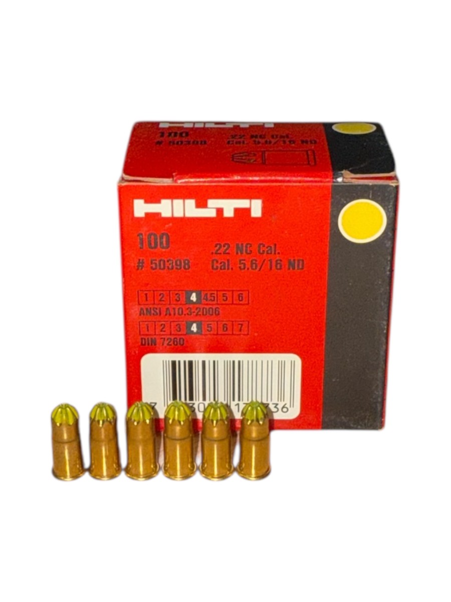 Мощные строительные патроны HILTI для КСОИ БУЛЬДОГ (только для них). Калибр 5,5 x 16 (0.22 NC); являются наиболее подходящими и качественными – с ними работает автоматический режим стрельбы. Поставляются в пачках по 100 штук. Стрельба с помощью них громкая и эффектная.