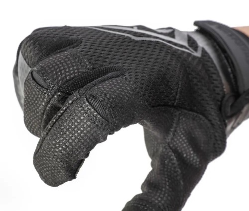 Термопластовая застежка на велкро дополнительно защищает тыльную сторону запястья. Материал оставлен однослойным для того, чтобы не затруднять сгибание пальцев. Материал указательного и большого пальца позволяет работать с сенсорным экраном. Дышащий материал и вентиляционные отверстия быстро отводят влагу, к тому же, перчатки очень быстро сохнут.