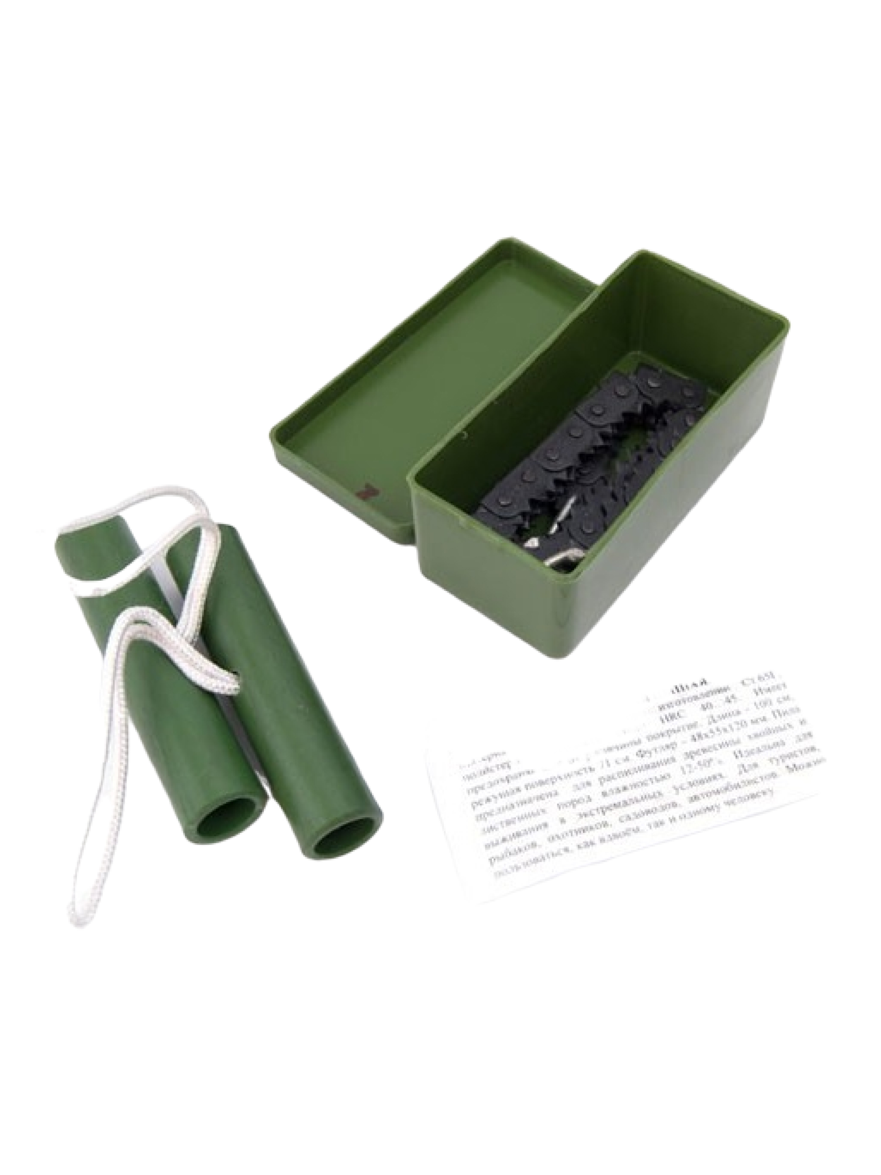 Пила цепная карманная предназначена для выпиливания в экстремальных условиях. Идеально подходит для охотников, туристов, рыболовов, садоводов; изготовлена из высокопрочной стали. Имеет предохраняющее от ржавчины покрытие.
