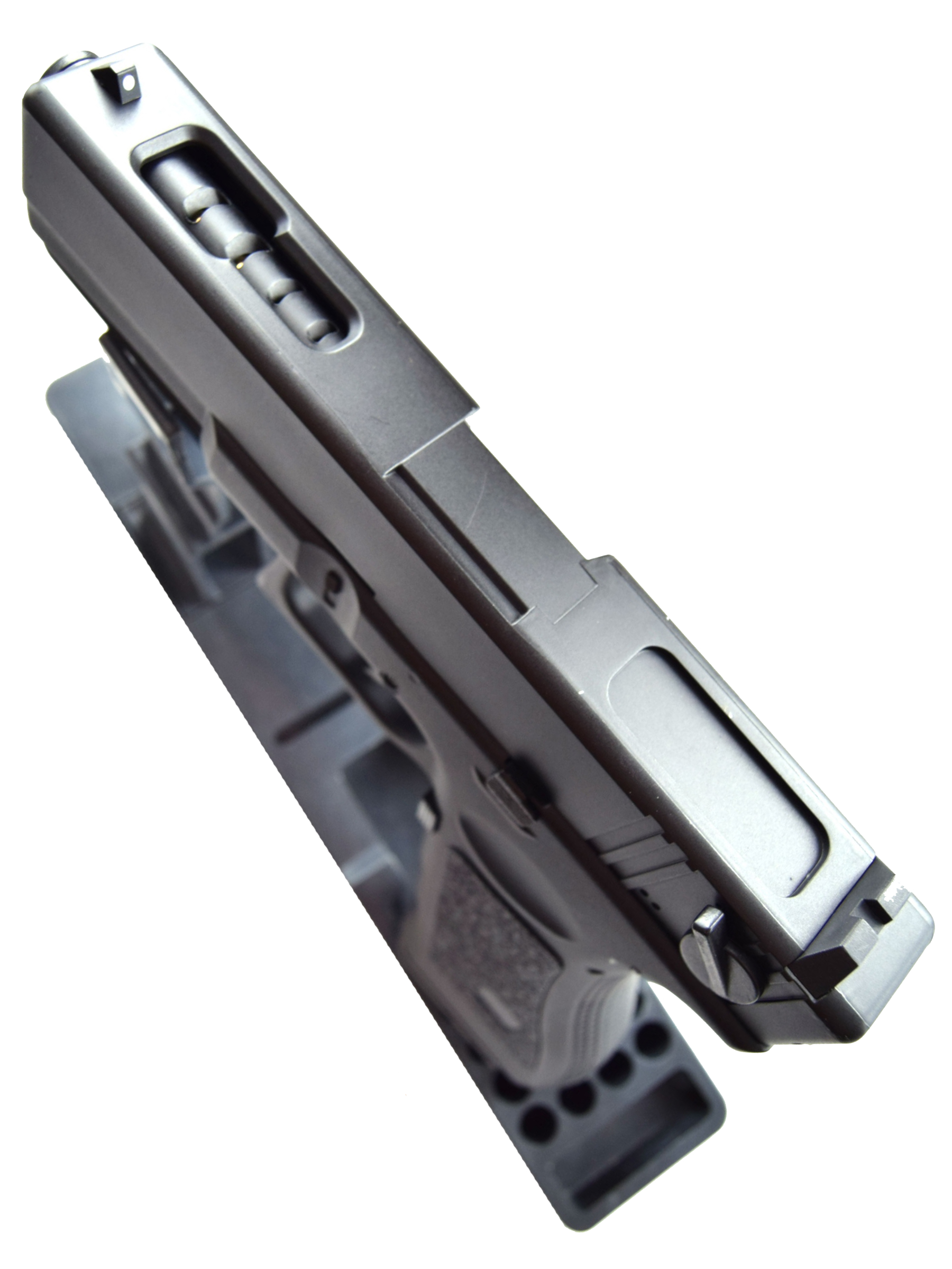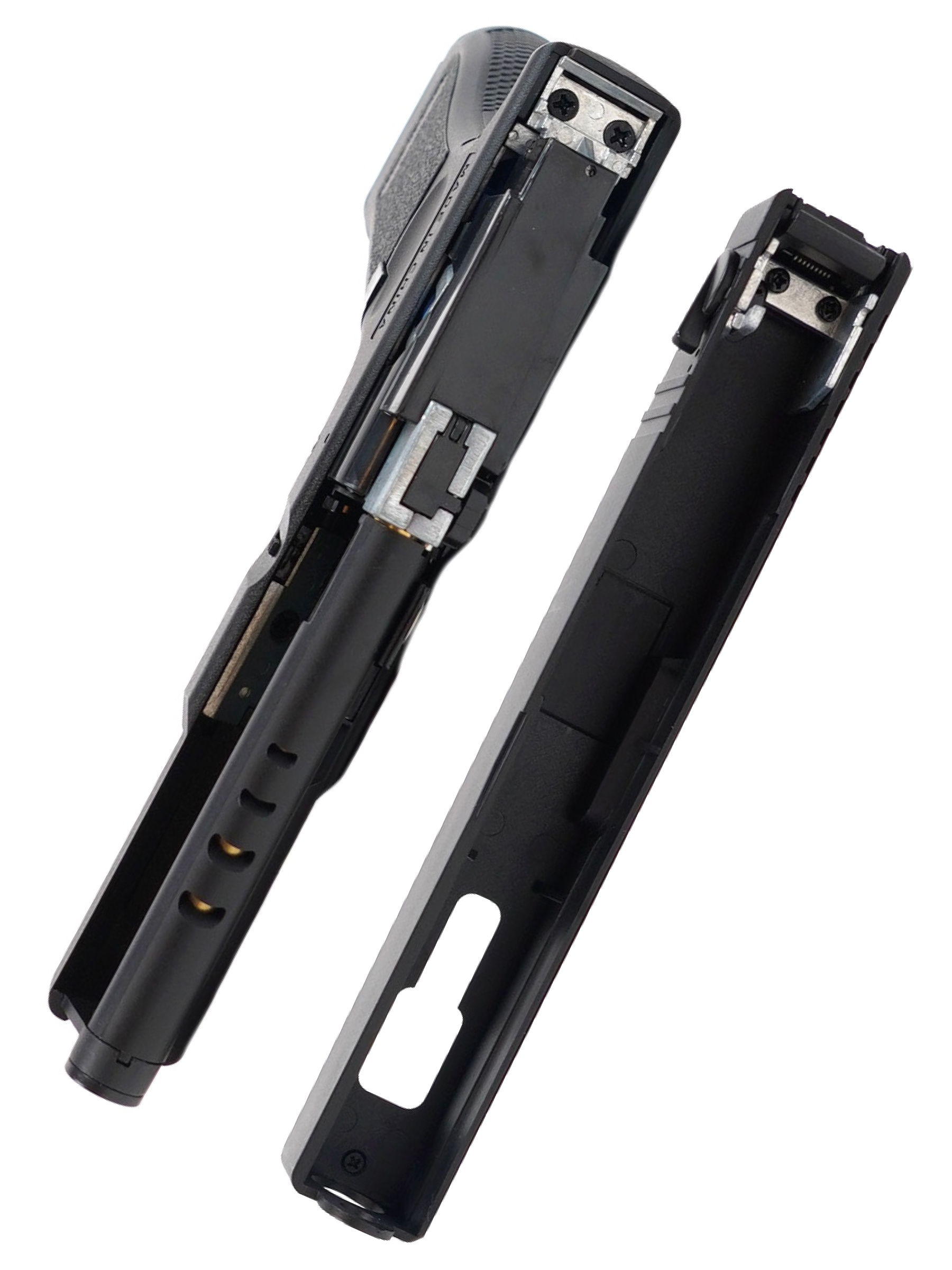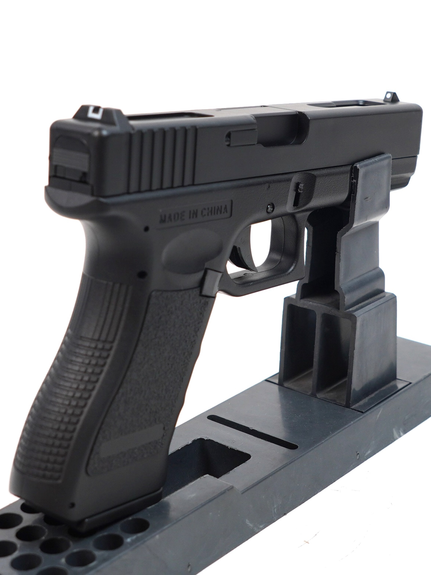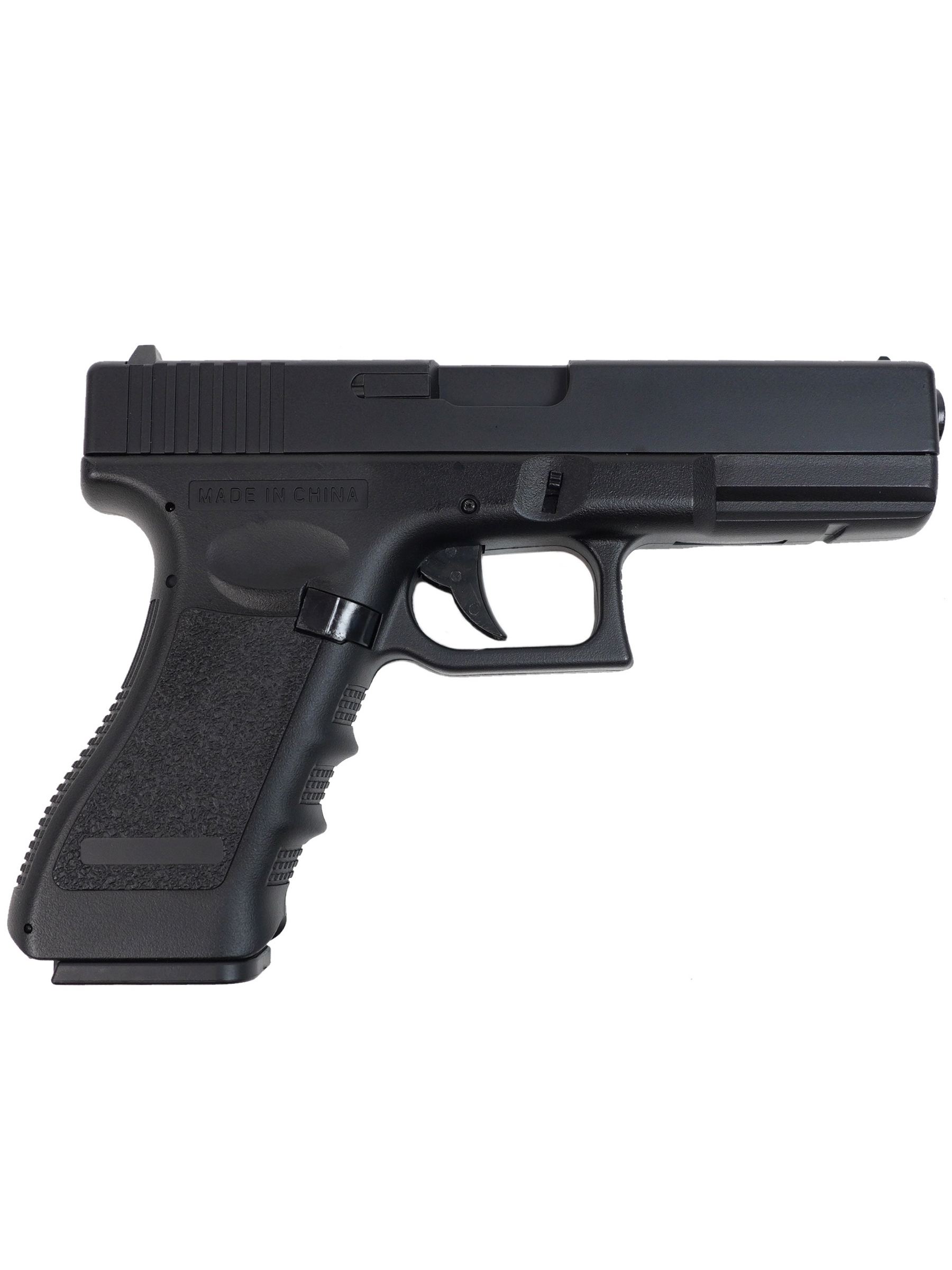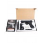 Корпус и часть компонентов пистолета изготовлены из пластика, гирбокс металлический. Изделие отличается наличием направляющей планки ниже ствола для навесного оборудования. Фактура рукоятки рифленая для удобного хвата. Предохранитель, как и у оригинала, отсутствует. Весит изделие 0,6 кг, длина всего 20 см. Поставляется с аккумулятором, устройством для его зарядки, комплектом боеприпасов, магазином и инструкцией.
