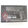 Cyma CM122 - cтрайкбольный пистолет, который способен может вести огонь как одиночными выстрелами, так и в автоматическом режиме. Модель классического пистолета Sig Sauer P226, отличается удлиненным стволом. Скорость вылета шара 60-70 м/с, при этом модель обладает хорошей скорострельностью.