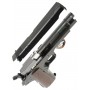 Внешне пистолет Кольт 1911 АЕП от Цима повторяет свой огнестрельный прототип. Модель выполнена добротно, все детали идеально подогнаны между собой. В основном пистолет выполнен из облегченного алюминиевого сплава, рамка и рукоятка здесь пластиковые. Это позволило снизить вес изделия по сравнению с оригиналом до 0,81 кг. Длина пистолета 23,5 см.