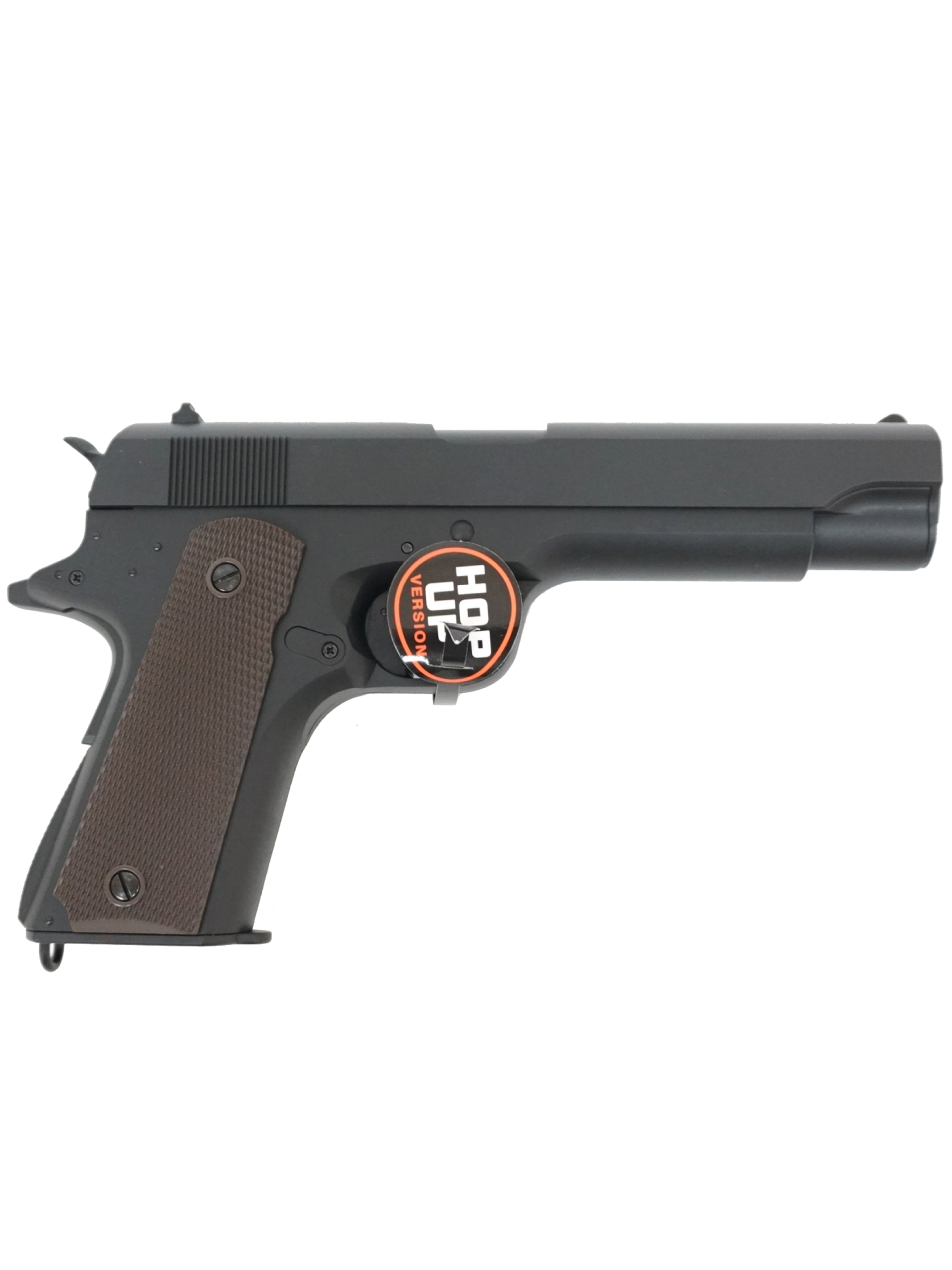 Страйкбольный пистолет Cyma Colt 1911 AEP (CM.123) – это одна из модификаций непревзойденного Кольта 1911, электропневматика высокого качества от азиатского производителя. Специально для данной модели разработан гирбокс, он металлический, и отличается ремонтопригодностью благодаря совместимости его деталей с деталями других производителей. Камера хоп-ап за счет возможности регулировки позволяет использовать боеприпасы различного веса, контролируя дальность их полета.