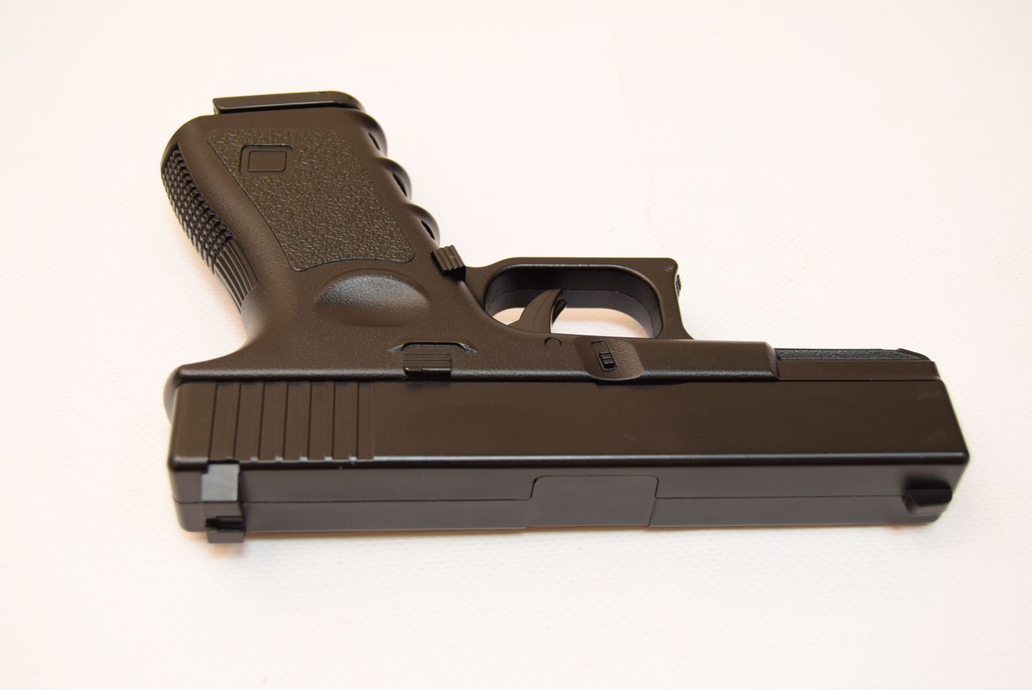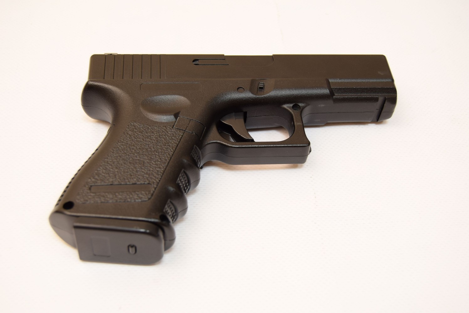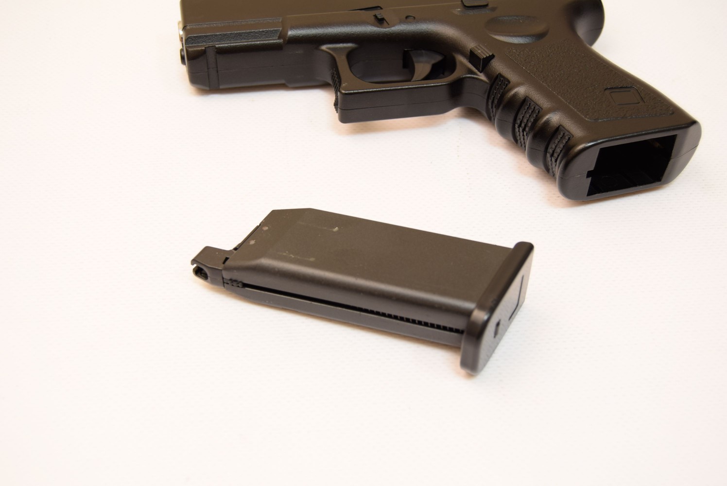 Galaxy G.15+ - качественная спринговая страйкбольная модель классического пистолета Glock 23, изготовленная из качественного цинкового сплава и пластика. Начальная скорость выстрела шарика 70-79 метров в секунду. Он поставляется сразу с кобурой, которая обеспечивает удобство его переноски и использования в качестве дополнительного игрового оружия во время страйкбольных командных соренований.