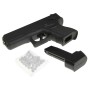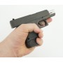 Материал модели – оцинкованный сплав металла и ABS-пластик, который и обеспечили небольшой вес модели – всего 286 г. Благодаря этому игровой Глок 17 является более удобным в переноске, а также позволяет комфортно вести прицельную стрельбу по различным целям одиночными выстрелами. Высокое удобство последнего обеспечивает также отлично повторенная тайваньцами оригинальной рукояти модели, которая предназначена полностью повторять анатомические характеристики руки пользователя.