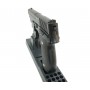 Магазин вмещает 13 шариков, диаметром 6 мм, а сам пистолет оснащается пружинным механизмом, который обеспечивает скорость полета пули до 60-69 м/сек. во время вылета из дула. За счет этого представленная модель является абсолютно безопасной в командной игре и подходит даже для использования подростками от 16 лет.