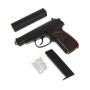 Пистолет оснащается пружинным механизмом, выстреливающим пули со скоростью до 59 м/сек, что делает его абсолютно безопасным для использования в игре. При этом игровое оружие оснащается магазином, емкостью 11 патронов, что на 3 патрона больше, чем в оригинальной модели. Хотя в этом случае, говоря о боезарядах, следует иметь в виду шарики для страйкбола, диаметром 6 мм.