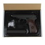 Galaxy G.29A - качественная спринговая страйкбольная модель классического пистолета Макарова с имитацией глушителя, изготовленная из качественного цинкового сплава и пластика. Цвет черный. Начальная скорость выстрела шарика 50-59 метров в секунду.