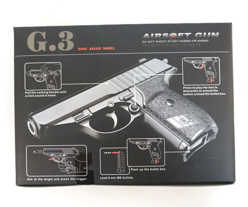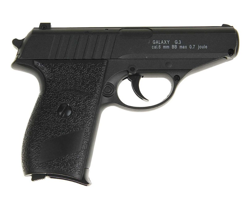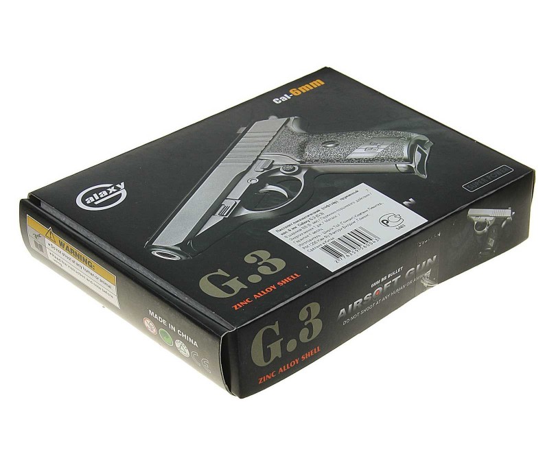 Galaxy G.3 - качественная спринговая страйкбольная модель классического пистолета Walther PPS, изготовленная из качественного цинкового сплава и пластика. Начальная скорость выстрела шарика 60-69 метров в секунду.