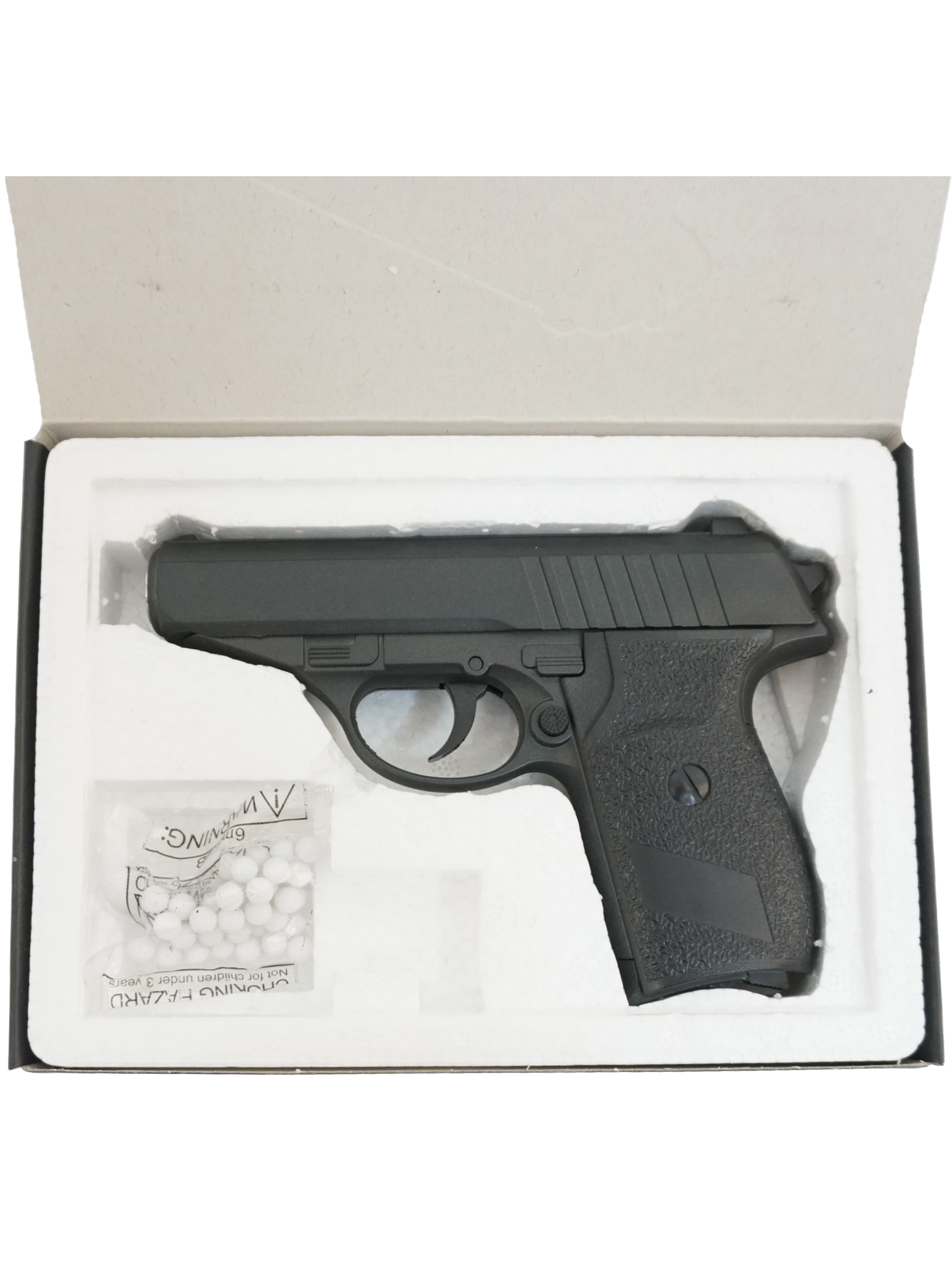 Поставляется пистолет в картонной коробке с шариковыми пулями, магазином и инструкцией, и сразу готов к использованию. В магазине помещается 8 патронов (шариков), как в оригинальном Вальтере, каждый выстрел слышится достаточно громко, да и сам пистолет выглядит как настоящий, так что игрок, в процессе игры, ощутит себя настоящим гангстером, используя копию знаменитого Walther в качестве дополнительного «оружия».