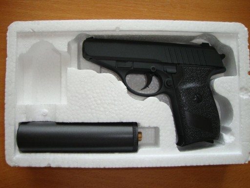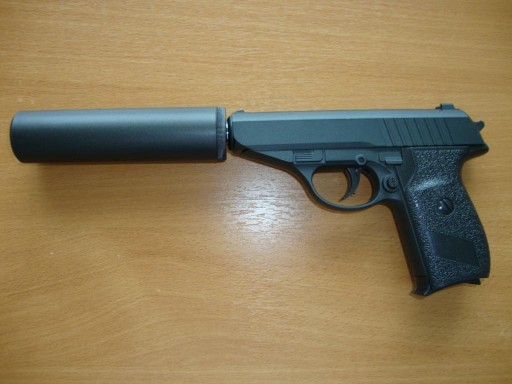 Комплектация (?): | пистолет, имитатор глушителя, инструкция, коробка |