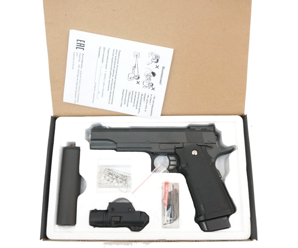Описание пистолета Galaxy G.6A Colt 1911 PD с глушителем и ЛЦУ: