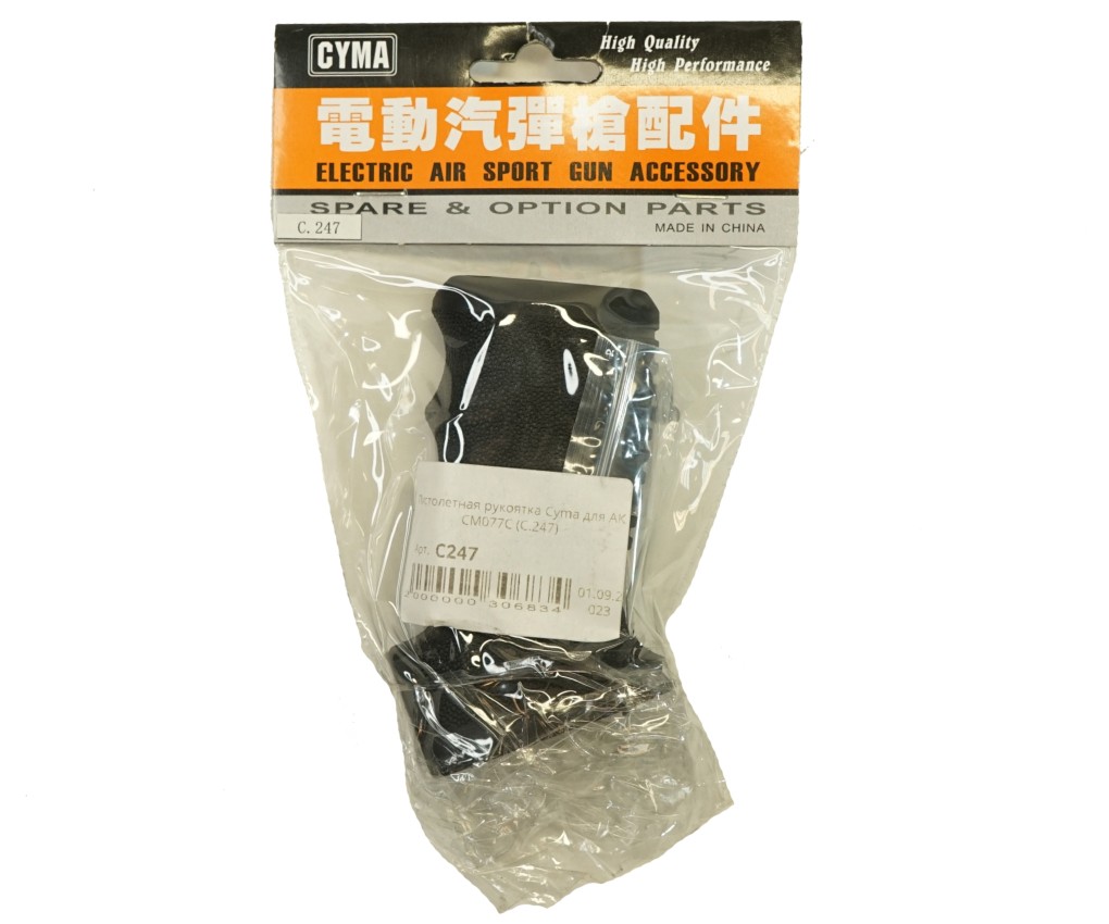 Пистолетная рукоять C.247 для страйкбольных приводов АК-серии CM077C от компании Cyma. Цвет - черный. Заменяет оригинальную рукоятку.