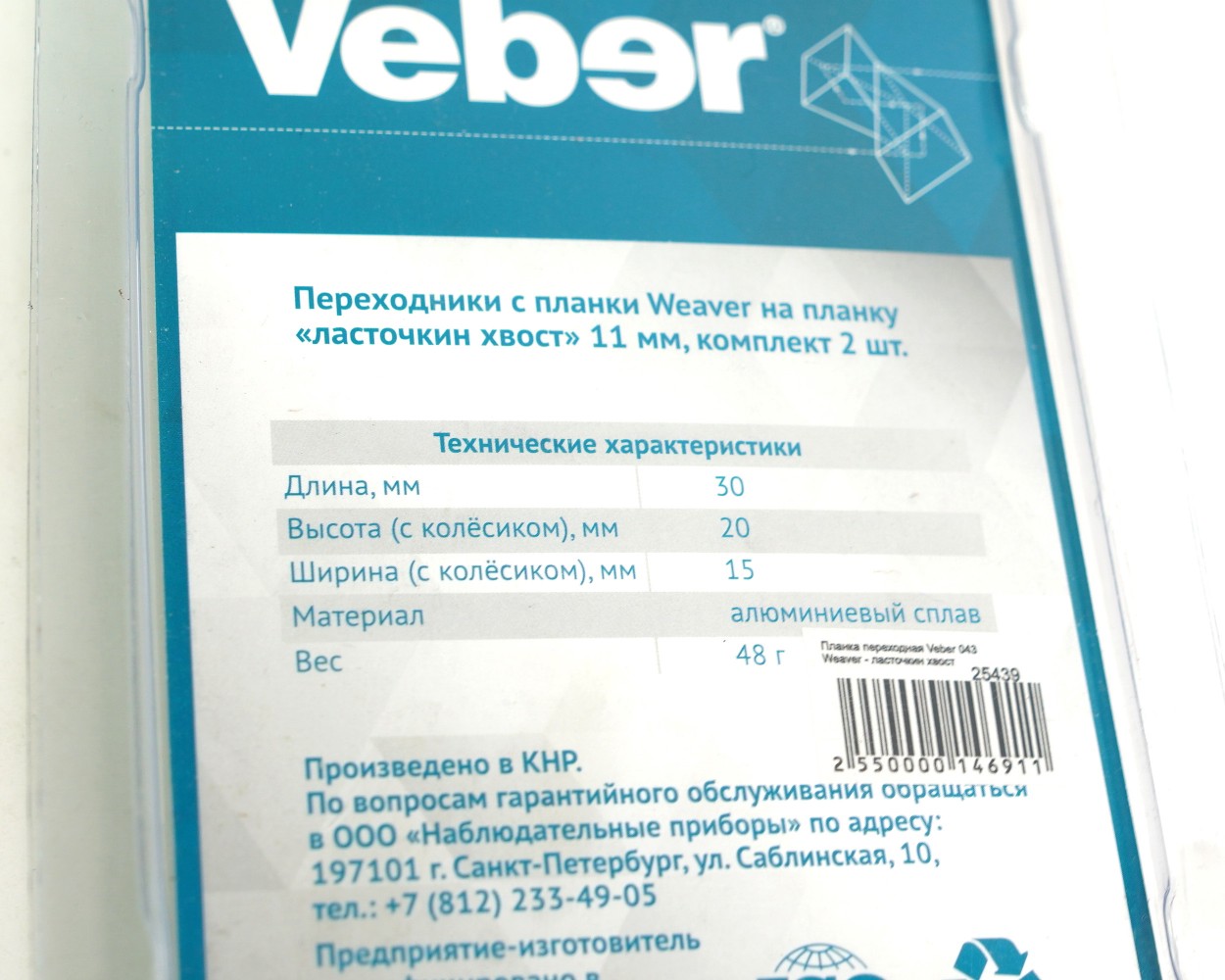 Планка переходная Veber 043 – переходник с Weaver на «ласточкин хвост» для расширения совместимости.