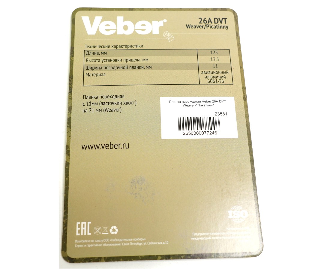 Переходная планка с «ласточкиного хвоста» на Weaver – надежное и универсальное решение для установки прицелов и аксессуаров с креплением Weaver на оружие с основанием «ласточкин хвост».