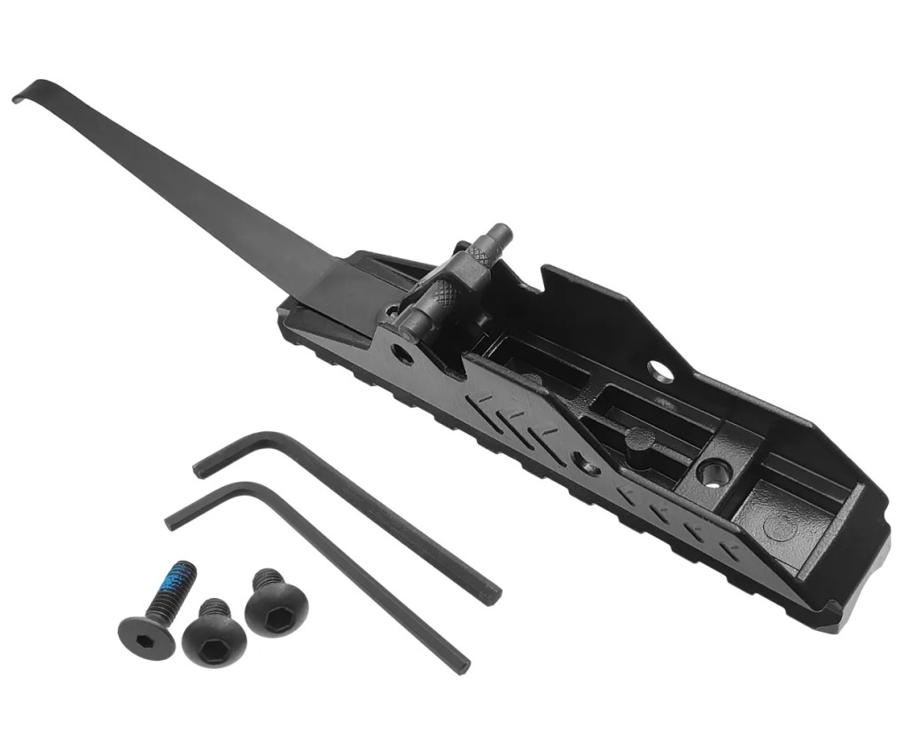 Планка комплектуется прижимной планкой, предохранителем от холостого выстрела, крепежными болтами и набором шестигранников для установки. Конструкция выполнена из алюминиевого сплава, прижимная планка и предохранитель – из стали.