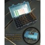 Для удобного учета патронов в комплекте идут специальные наклейки. Она оснащена удобной откидной крышкой голубого цвета. Имеет небольшое ушко для замка-пломбы. Спереди на стенке и сверху на этикетке крышки указаны подходящие калибры патронов для размещения в ячейках. Бокс для боеприпасов стоек к ударным нагрузкам, деформациям, колебаниям температуры, защищает от пыли, грязи и влаги.