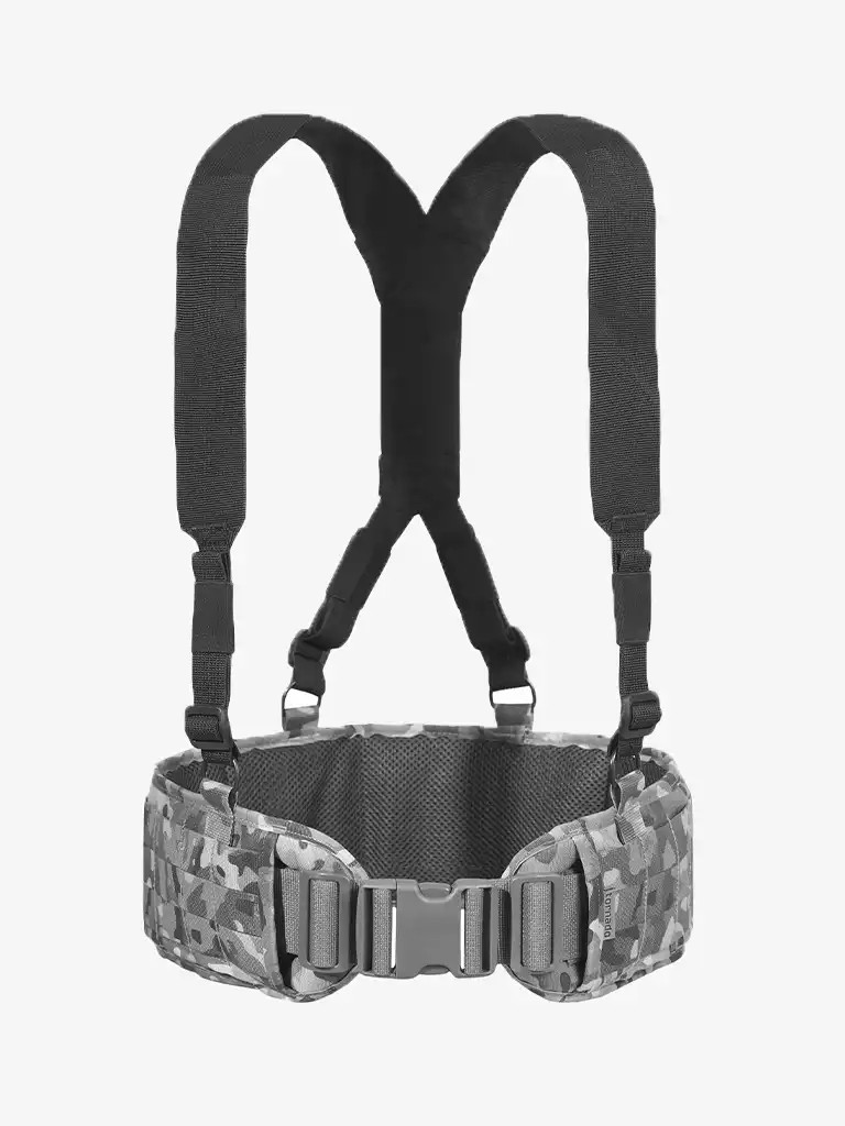 Суспендеры от Tornado Tactical требуют четыре точки крепления. Могут устанавливаться как в D-образные полукольца, так и в ячейки MOLLE на поясе. Низкий профиль лямок позволяет носить их под бронежилетом или совместно с рюкзаком