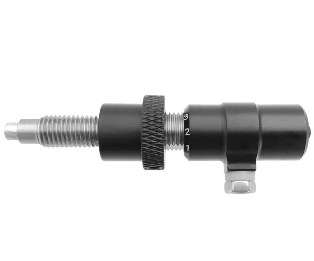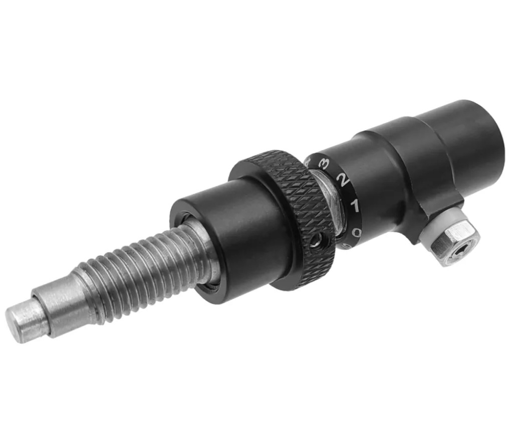 Плунжер устанавливается в специальное отверстие в рукоятке лука и служит для правильного позиционирования стрелы на полочке, а также для компенсации бокового изгиба стрелы при выстреле.