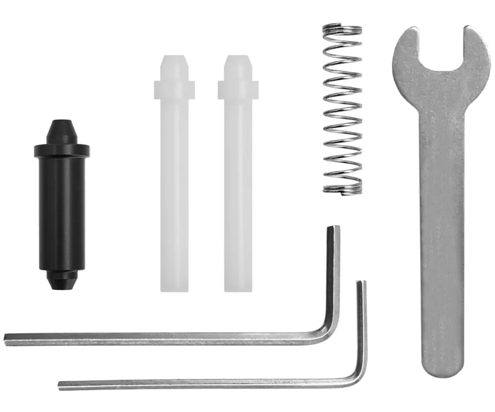 Комплектация (?): | плунжер, шестигранники для регулировки плунжера (2шт): диаметр: 1/16 и 5/64 дюйма, ключ гаечный для разбора плунжера, пластиковая кнопка и одна запасная (всего - 2шт), запасная пружина, запасной стоппор |