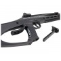 Корпус винтовки выполнен из ударопрочного оружейного пластика, внешний ствол – металлический, гладкий. Приклад винтовки ASG TAC 4.5 снабжен резиновым затыльником, гарантирующим снижение отдачи и больший комфорт в процессе стрельбы. Рукоятка имеет удобную эргономичную форму, что позволяет крепко удерживать винтовку при стрельбе или во время перемещений.