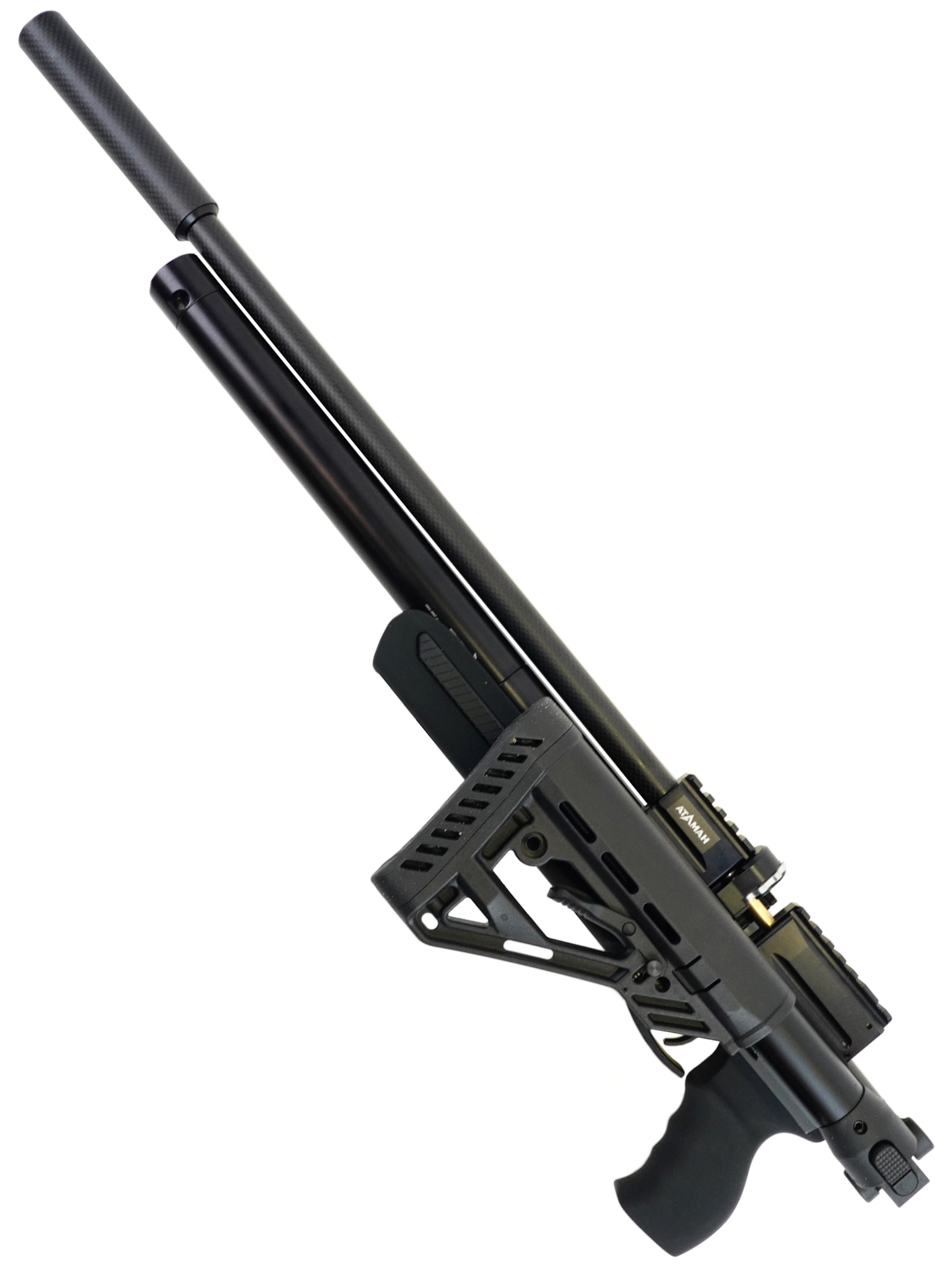 Пневматическая винтовка M20 Ultracompact от компании Ataman — идеальный выбор для тех, кто ценит мощность и компактность. Это оружие предназначено для спортивных тренировок и развлекательной стрельбы. Модель оснащена системой предварительной накачки (РСР), где источником энергии служит сжатый воздух, который закачивается в резервуар объёмом 160 см³. Максимальное давление в резервуаре достигает 300 бар, контролировать его помогает встроенный манометр. Также присутствует редуктор.