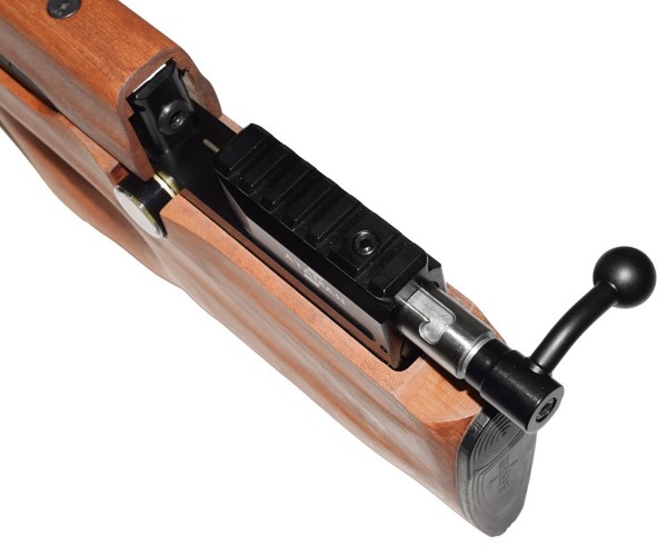 Выше спускового крючка расположена кнопка предохранителя, прицельные приспособления здесь открытого типа. Присутствует направляющая Пикатинни, позволяющая становить прицел оптического или коллиматорного типа. Все механизмы винтовки изготовлены из металла, ложе выполнено из натурального бука. Весит винтовка 3,2 кг при длине в 72 см. Оружие комплектуется заправочным штуцером и паспортом.