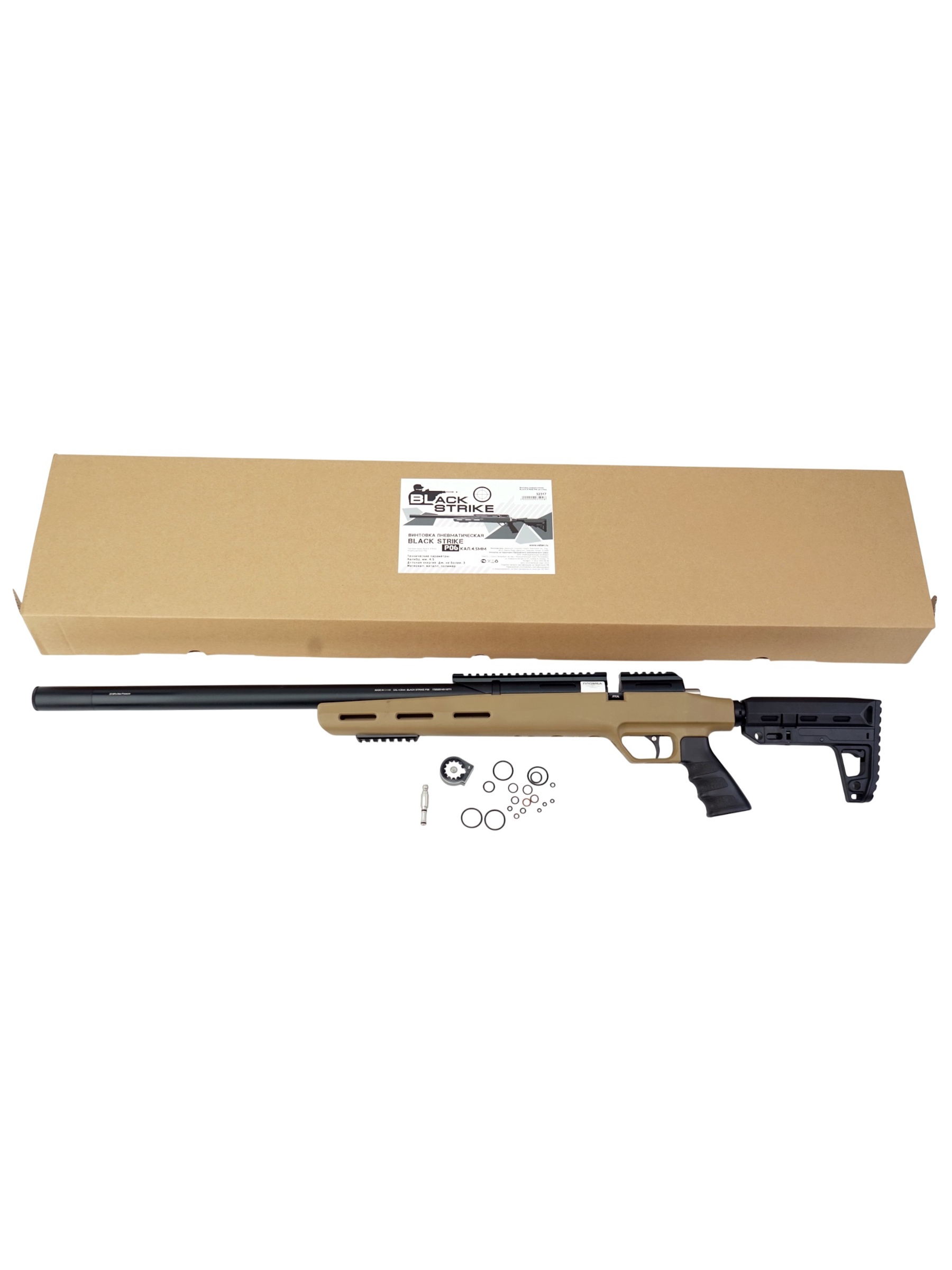 | Комплектация (?): | винтовка, переходник для заправки, барабан на 12 пуль, запасные уплотнительные кольца, инструкция, упаковка |