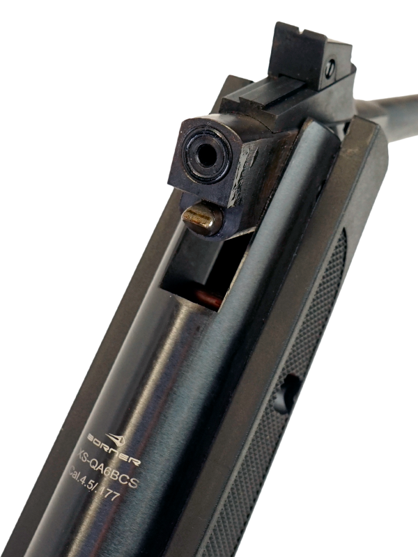 В основе точности лежит металлический ствол длиной 460 мм, который покрыт воронением для защиты от коррозии и увеличения срока службы. Внутри ствола расположены нарезы классического типа, предназначенные для стабилизации свинцовых пуль калибра .177 (4.5 мм).