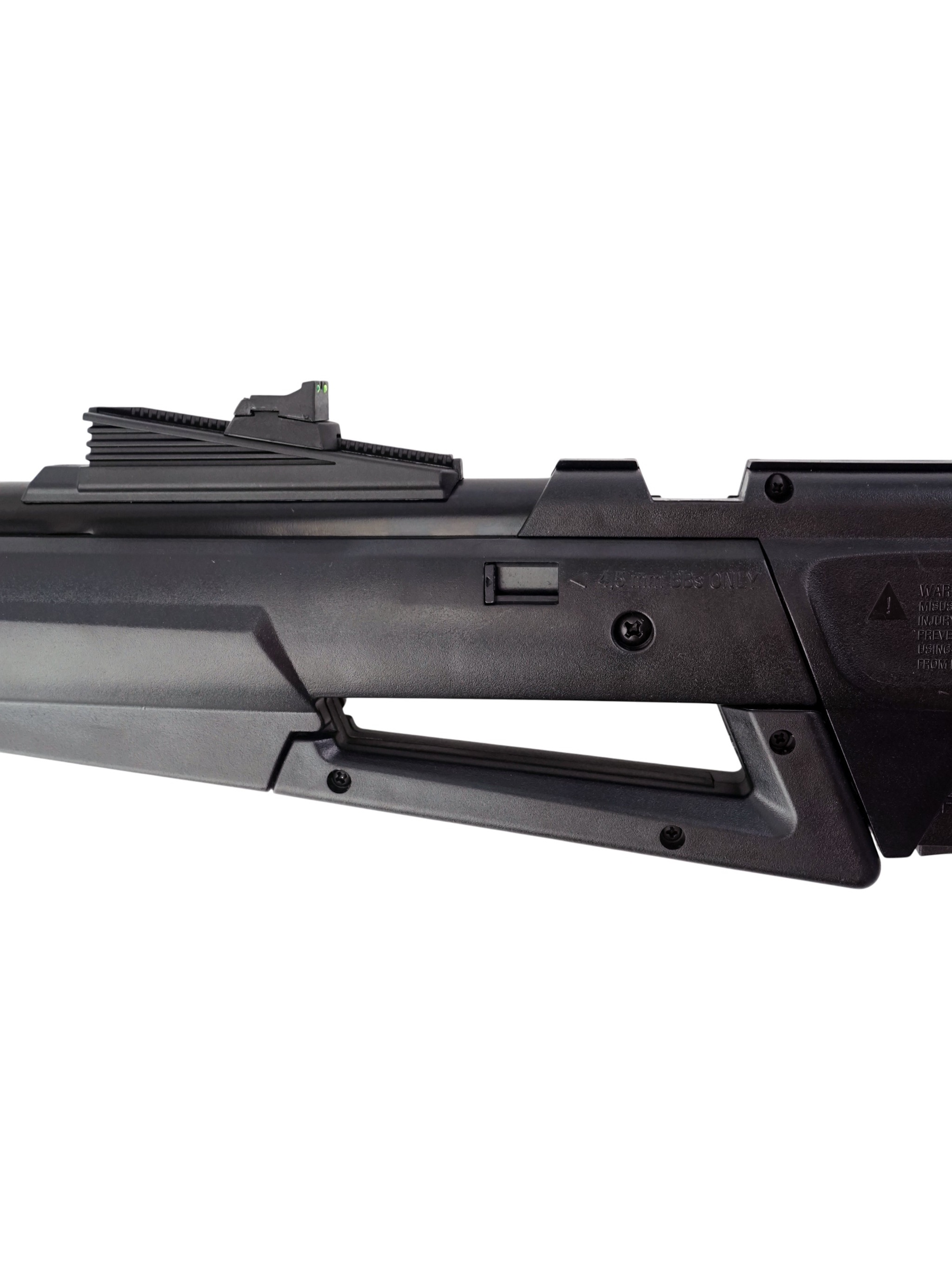 Благодаря вместительному магазину, в который можно поместить 1 пулю или одновременно 60 шариков BB, винтовка позволяет быстро переключаться между видами боеприпасов. Для прицеливания предусмотрены регулируемый целик и мушка с фибероптическими нитями, что дает возможность точно прицеливаться в различных условиях. А наличие планки типа «ласточкин хвост» на 11 мм позволяет установить дополнительный оптический прицел, доводя точность до высокого уровня.
