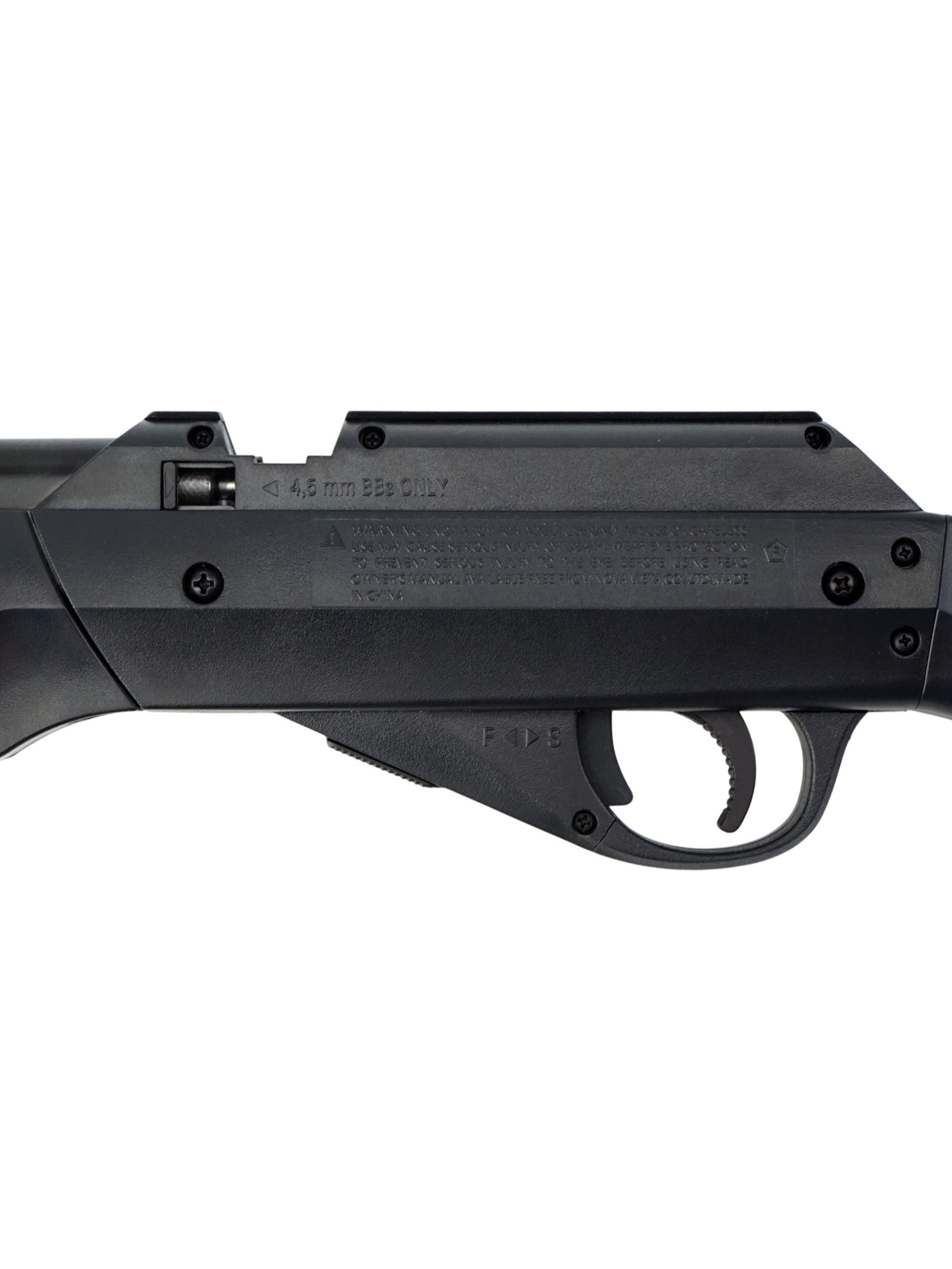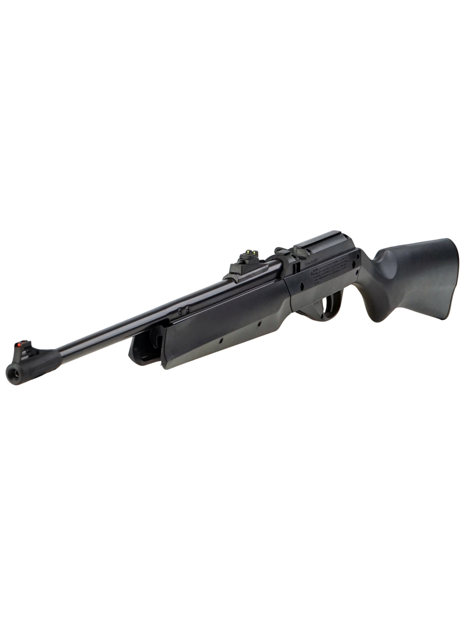 Обладая калибром 4,5 мм (.177), она работает по принципу компрессионной пневматики, что позволяет самостоятельно накачивать воздух для каждого выстрела — это делает стрелковый процесс более активным и интересным. Источником энергии служит подствольная накачка, а дульная энергия достигает до 3 Дж, что обеспечивает скорость выстрела до 120 м/с.