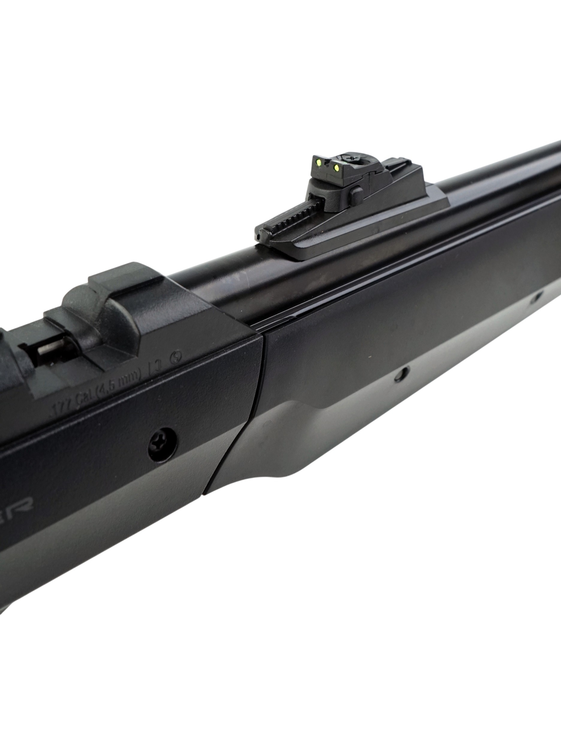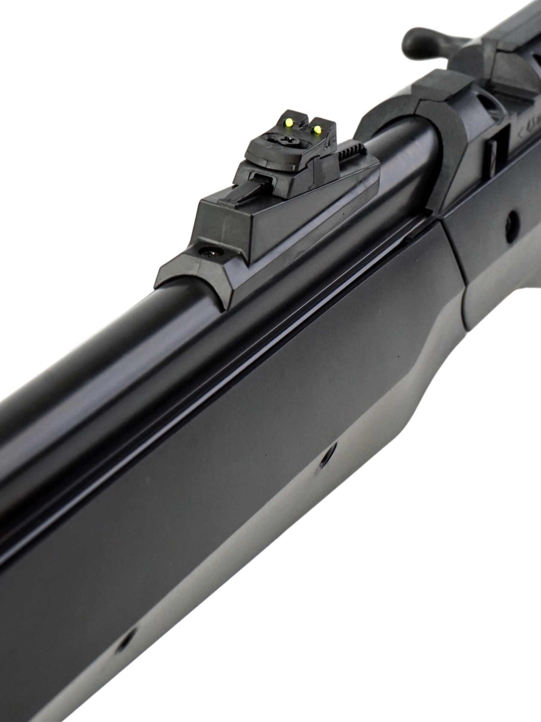Благодаря вместительному магазину, в который можно поместить 1 пулю или одновременно 40 шариков BB, винтовка позволяет быстро переключаться между видами боеприпасов. Для прицеливания предусмотрены регулируемый целик и мушка с фибероптическими нитями, что дает возможность точно прицеливаться в различных условиях. А наличие планки типа «ласточкин хвост» на 11 мм позволяет установить дополнительный оптический прицел, доводя точность до высокого уровня.