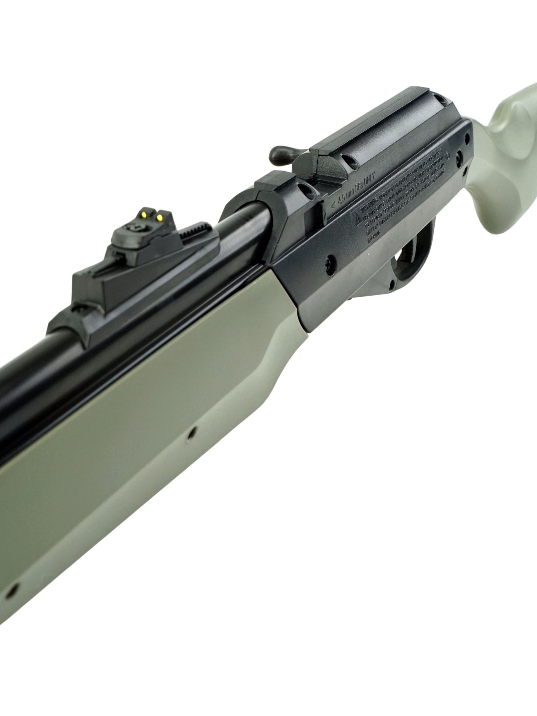 Обладая калибром 4,5 мм (.177), она работает по принципу компрессионной пневматики, что позволяет самостоятельно накачивать воздух для каждого выстрела — это делает стрелковый процесс более активным и интересным. Источником энергии служит подствольная накачка, а дульная энергия достигает до 3 Дж, что обеспечивает скорость выстрела до 120 м/с.