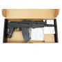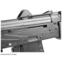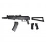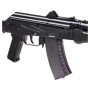 Приклад также изготовлен из пластика, но в отличие от боевого АКСУ он не складывается, а может сниматься. Чтобы снять деталь следует воспользоваться специальным фиксатором внизу, и нажав его подвинуть приклад вверх. Магазин крепится таким же образом как боевой модели, но он слегка короче. В магазине помещается 150 пулек.