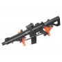 Производитель сохранил в своей разработке подвижность большинства элементов огнестрельного прототипа – здесь подвижный затвор, рабочая клавиша досыла снаряда, открывающаяся крышка выброса гильз, а также регулируемый по длине приклад и тактическая рукоятка с возможностью регулировки.
