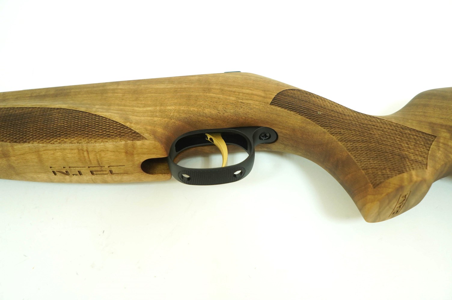 У винтовки Diana 340 N-Tec Luxus сборка и материалы истинного немецкого качества, где приклад из натурального ореха, а ствол и металлические детали из стали, являющейся оружейной с вороненым покрытием, прочным к коррозии. К тому же ствол нарезной, что обеспечивает лучшую точность, кучность, стабильность и скорость стрельбы. А конструкция эргономичного приклада оснащена затыльником из резины, который имеет вентиляцию и гасит отдачу и вибрацию; также удобной пистолетной рукоятью.