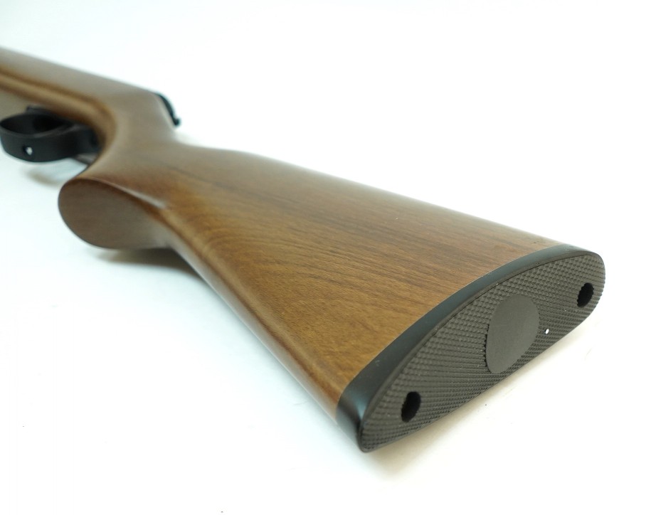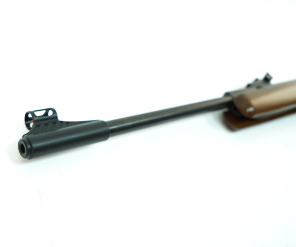 Для свободной продажи в России данная модель ослаблена, что подтверждает буква «F» в наименовании, а потому скорость боеприпаса умеренная, но таковую можно увеличить до 380 м/сек путем тюнинга винтовки. Для обеспечения безопасности от случайного выстрела служит предохранитель - автоматический.