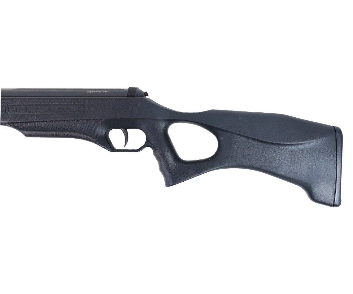 Немецкая пневматическая винтовка Diana Eleven относится к винтовкам пружинно-поршневого типа. Выстрел в такого рода пневматических винтовках происходит за счет сжатия пружины. Взведение осуществляется при помощи “переламывания” ствола. Пневматическая винтовка Diana Eleven является однозарядной, то есть после каждого выстрела требуется произвести повторный взвод. Соответственно, магазин представленной модели рассчитан на 1 пулю. Стоит отметить, что для стрельбы из данной винтовки рекомендуется использовать легкие пули калибра 4.5 мм. (0.3-0.4 г.). Винтовка Диана Элевен обладает достойными стрелковыми и техническими характеристиками. Скорость вылета пули после усиления составляет приблизительно 175 м/с. Этого будет достаточно для развлекательной стрельбы по мишеням. Представленная модель винтовки обладает высокой кучностью и минимальной отдачей. Материал ствола изготовлен из стали, ложе и приклад - из пластика. В комплекте с винтовкой поставляются специальные проставки (3 шт.), с помощью которых можно оптимизировать длину приклада и уменьшить реакцию от отдачи.. Переломка Diana Eleven оснащена креплением “Ласточкин хвост” для установки оптического прицела. Для безопасности на винтовке предусмотрен предохранитель автоматического типа, который блокирует спусковой крючок при взведении. Винтовка Диана оснащена прицельными приспособлениями - регулируемым целиком и мушкой с фибероптическими нитями. За счет своей надежности, высоких технических характеристик и простоты использования пневматическая винтовка Diana Eleven станет идеальным вариантом для развлекательной стрельбы и повышения стрелковых навыков.