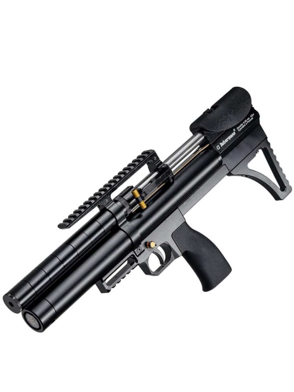 Простая и надежная в устройстве пневматическая винтовка с предварительной накачкой Dobermann Alfa в исполнении Буллпап представляет собой модульную, мультикалиберную конструкцию, в которой все основные элементы являются самостоятельными блоками, что позволяет легко адаптировать винтовку под поставленные задачи. Вы с легкостью можете изменить длину резервуара или модератора, заменить ствол, приклад, установить дополнительное оборудование и т.д.