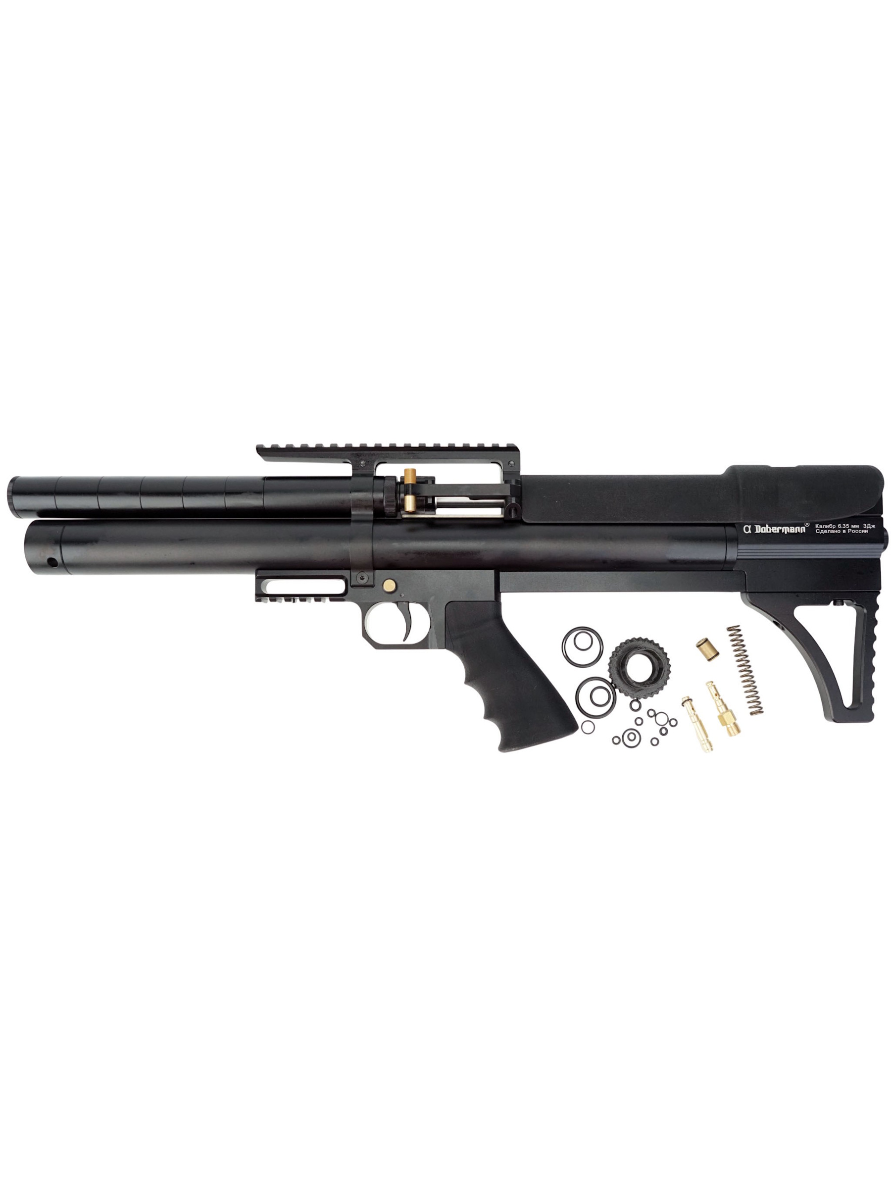 Простая и надежная в устройстве пневматическая винтовка с предварительной накачкой Dobermann Alfa в исполнении Буллпап представляет собой модульную, мультикалиберную конструкцию, в которой все основные элементы являются самостоятельными блоками, что позволяет легко адаптировать винтовку под поставленные задачи. Вы с легкостью можете изменить длину резервуара или модератора, заменить ствол, приклад, установить дополнительное оборудование и т.д.