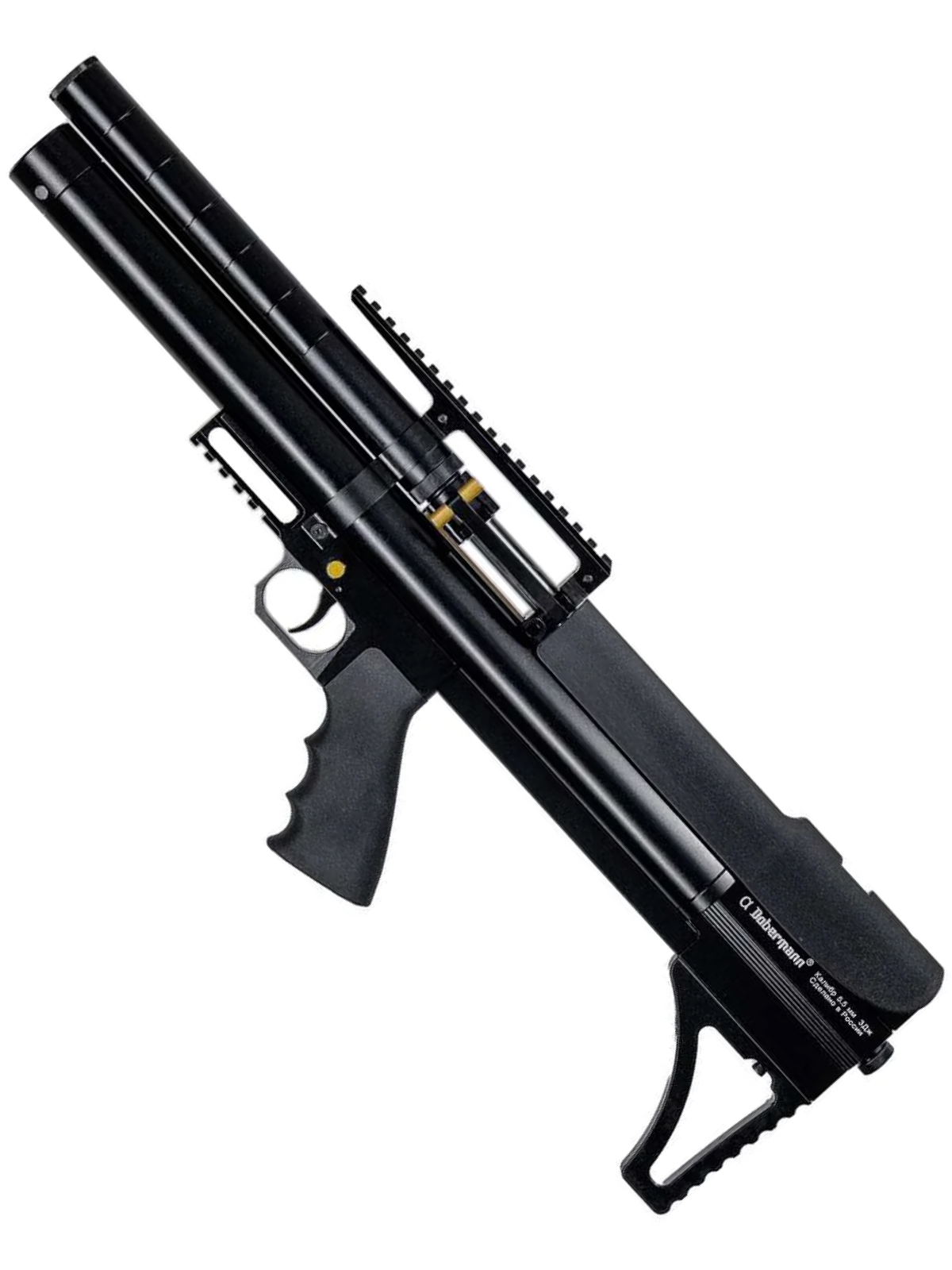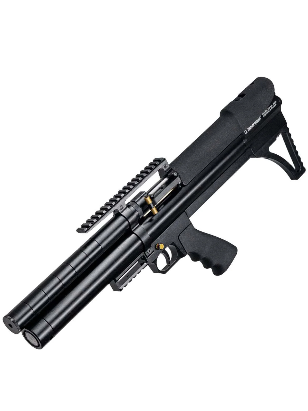 Простая и надежная в устройстве пневматическая винтовка с предварительной накачкой Dobermann Alfa в исполнении Буллпап представляет собой модульную, мультикалиберную конструкцию, в которой все основные элементы являются самостоятельными блоками, что позволяет легко адаптировать винтовку под поставленные задачи. Вы с легкостью можете изменить длину резервуара или модератора, заменить ствол, приклад, установить дополнительное оборудование и т.д.