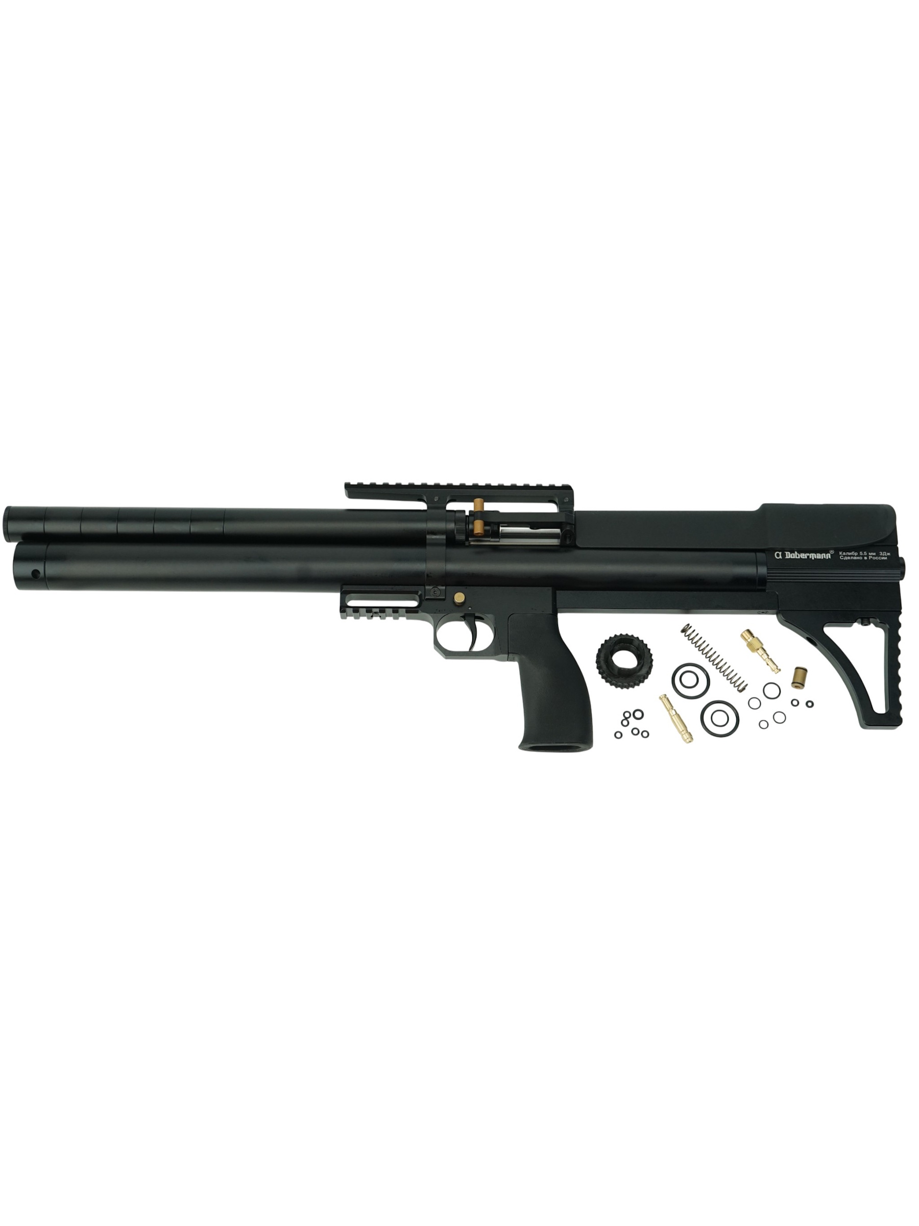 Простая и надежная в устройстве пневматическая винтовка с предварительной накачкой Dobermann Alfa в исполнении Буллпап представляет собой модульную, мультикалиберную конструкцию, в которой все основные элементы являются самостоятельными блоками, что позволяет легко адаптировать винтовку под поставленные задачи. Вы с легкостью можете изменить длину резервуара или модератора, заменить ствол, приклад, установить дополнительное оборудование и т.д.