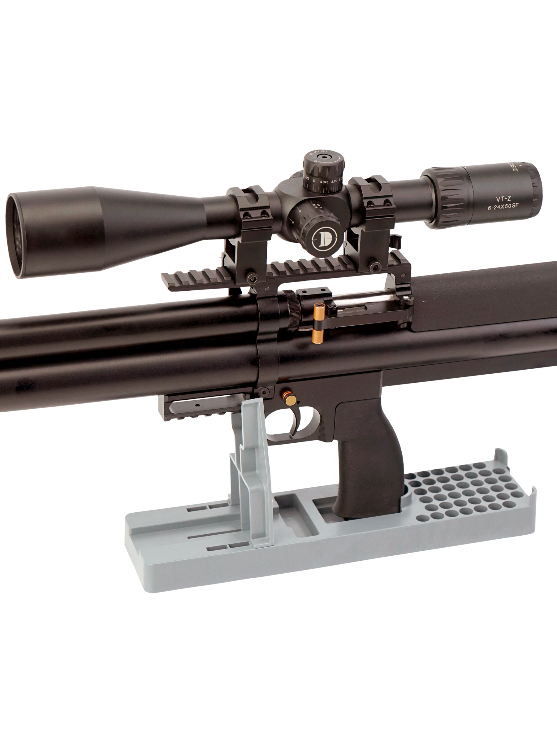 Простая и надежная в устройстве пневматическая винтовка с предварительной накачкой Dobermann Alfa в исполнении Буллпап представляет собой модульную, мультикалиберную конструкцию, в которой все основные элементы являются самостоятельными блоками, что позволяет легко адаптировать винтовку под поставленные задачи. Вы с легкостью можете изменить длину резервуара или модератора, заменить ствол, приклад, установить дополнительное оборудование и т.д.