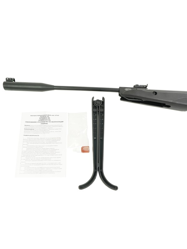 Ствол оснащен надульником-компенсатором. Установлена база для оптики в виде планки «ласточкин хвост». Механизм прицеливания представляет собой оснащенные оптоволокном мушку с целиком регулируемого типа. Винтовка имеет длину 115 см, весит 2,9 кг. Поставляется в комплекте с сошками, инструкцией.