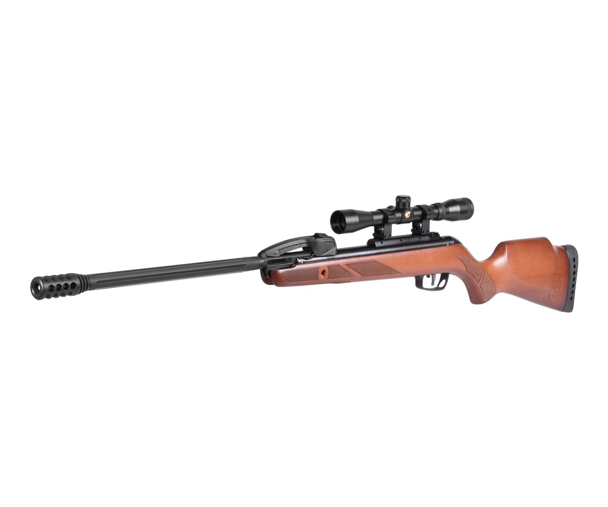 Для дополнительного смягчения силы отдачи предусмотрен резиновый затыльник. На верхней части приклада присутствует подщечник, облегчающий прицеливание. Двухпозиционный предохранитель модели расположен внутри спусковой скобы. Винтовка комплектуется прицелом 4х32. Планка RRR обеспечивает дорогостоящей оптике защиту от отдачи и гарантировано повышает ресурс изделия. Приклад и ложе винтовки Gamo Fast Shot 10X изготовлены из натурального ореха, ствол стальной. Вес оружия – 3 кг, общая длина – 109 см. В комплектацию включен прицел и паспорт.
