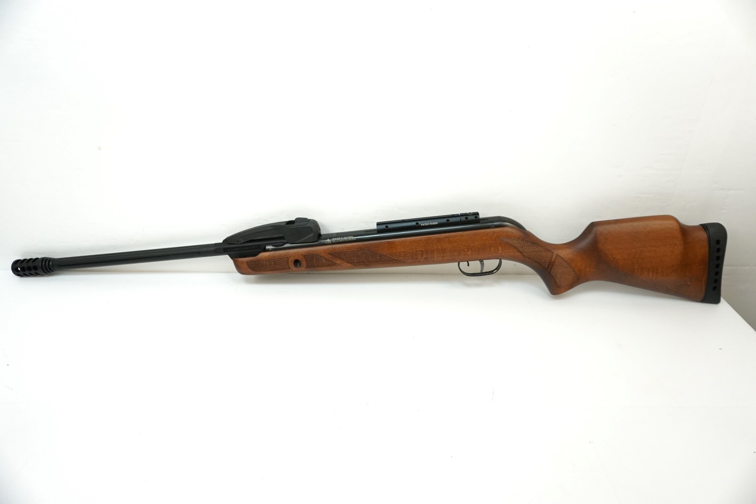 УСМ винтовки двойного действия. Взведение производится мускульной силой человека путем переламывания ствола. Боеприпасы – стандартные пневматические пули 4,5 мм, емкость магазина – 10 единиц. За счет использования ослабленной пружины данная модификация мощностью в 3 Дж доступна для покупки без специальных разрешений.