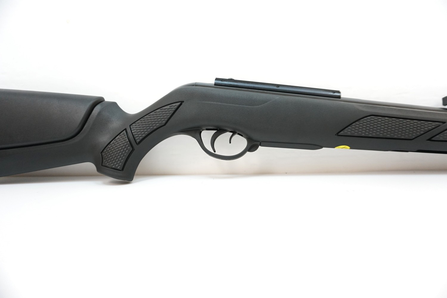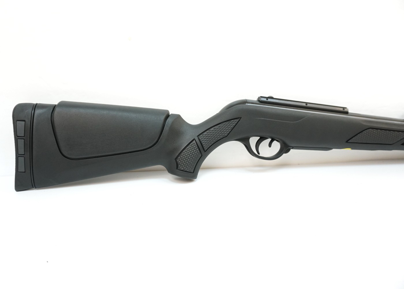 Дульная энергия винтовки составляет менее 3 Дж, купить оружие такой мощности, в соответствии с российскими законами, может каждый совершеннолетний. За счет установки в стальном стволе винтовки спиралевидных нарезов увеличивается кучность и прицельность выстрелов. Предохранитель неавтоматического типа с двумя положениями расположен внутри скобы спуска.