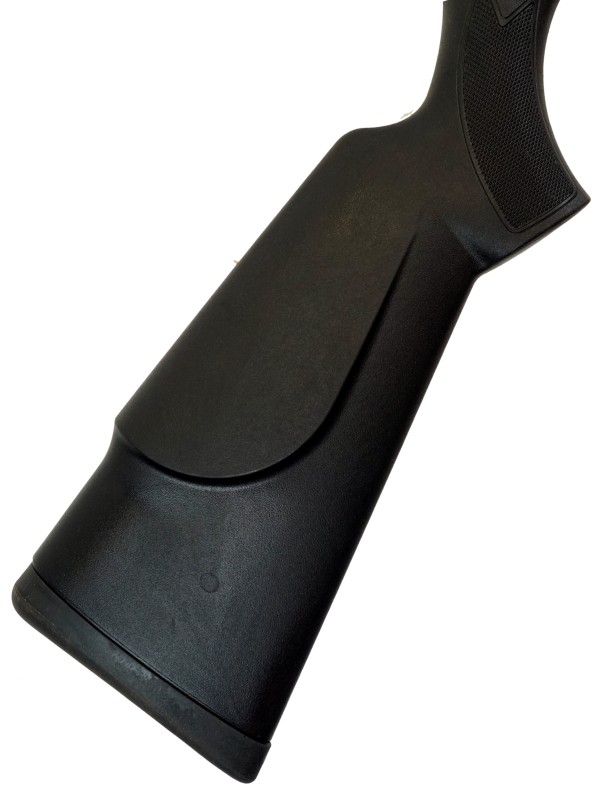 Выше представленная модель Hatsan 70 имеет осмысленное расположение включателя предохранителя - на тыльной стороне цилиндра, еще снизу цевье в винтовке имеется пропил под тяговое устройство поршня, служащее для более комфортного взвода, который, выполняется, кстати, уже всем привычным классическим способом. Также винтовка оборудована регулировочными болтами, которые помогут настроить движение курка под силу стрелка. Спуск мягок и предсказуем.