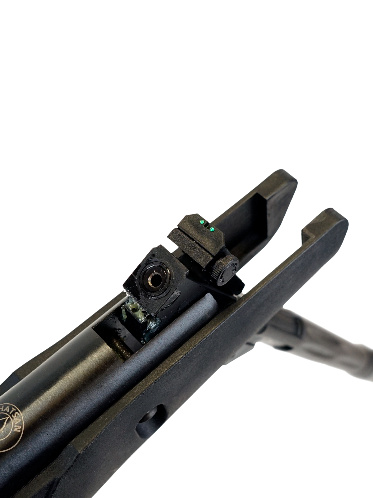 Затыльник – из резины. Ствол винтовки стальной. Рукоять пистолетного типа. Наличие планки «ласточкин хвост» позволяет дополнить винтовку оптикой. Прицельные приспособления оснащены фибероптическими нитями. Длина винтовки 113 см, вес 2,75 кг. Винтовка поставляется с руководством по эксплуатации.